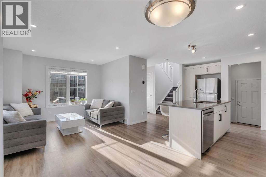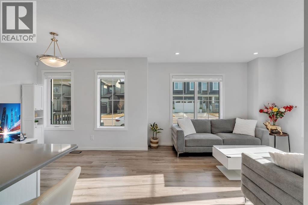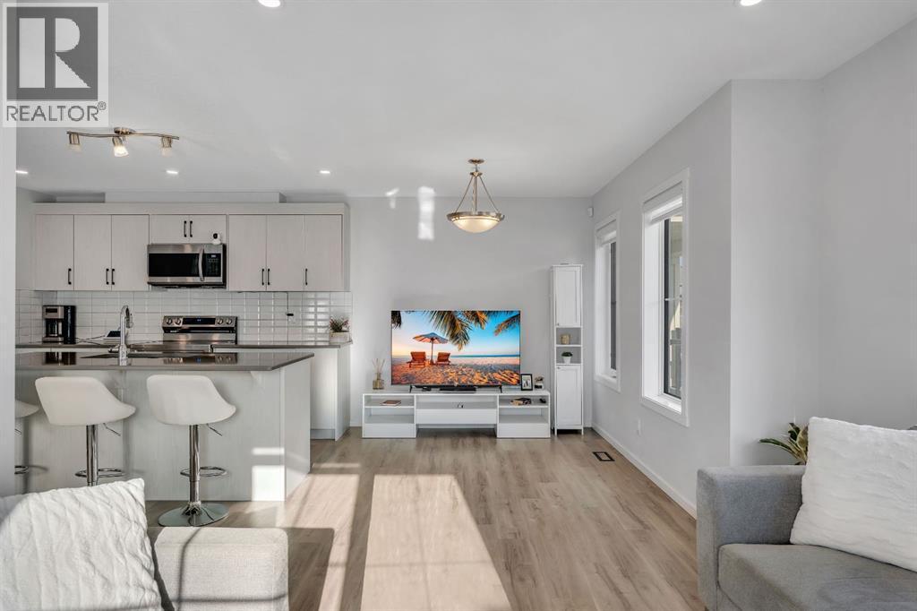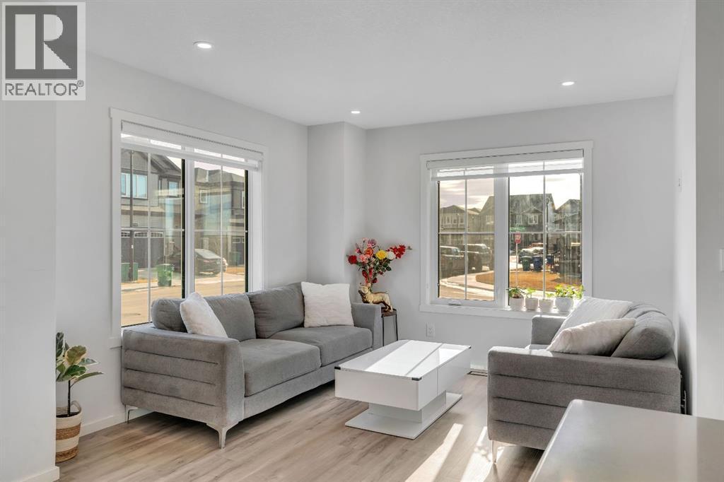 OPEN HOUSE Saturday Feb 21st: 2pm-4pm**Excellent Opportunity!Prime Corner Lot Location! Welcome to this stunning NO CONDO FEE townhouse perfectly positioned in the family-friendly community of Southwinds, Airdrie offering space, upgrades, and income potential all in one smart package. PREMIUM FARMHOUSE ELEVATION | 4 BEDROOMS | 3.5 BATHROOMS | FINISHED BASEMENT (ILLEGAL SUITE) | 2000+ SQ FT TOTAL LIVABLE SPACE | FRONT DOUBLE ATTACHED GARAGE | HUGE CORNER LOT | $50K+ UPGRADES | 2025 OCCUPIED | WALKING DISTANCE TO AMENITIES. From the moment you arrive, the charming curb appeal and premium corner positioning set this home apart - providing added privacy, extra natural light, and no neighbours on the sides. Step inside to a bright, open-concept main floor designed for modern living. The upgraded chef-inspired kitchen features quartz countertops, stainless steel appliances, good sized island, sleek cabinetry, and a layout that flows seamlessly into the dining area and inviting living room - perfect for entertaining or everyday comfort. A convenient powder room, mudroom, and attached double garage enhance functionality. Upstairs, upgraded railings lead to a serene primary retreat complete with a private deck, spacious walk-in closet, and 4-piece ensuite. Two additional generous bedrooms, a full bathroom, and an upper laundry room with upgraded washer and dryer complete the level. The fully finished basement adds incredible flexibility with a 1-bedroom illegal suite setup featuring a wet bar (fridge, hot plate, microwave, and hood fan) and full bathroom. The shared main entrance leads directly to basement stairs near the front, creating natural separation and added privacy. Loaded with approximately $50,000 in upgrades including quartz counters, LVP flooring, upgraded carpet, wooden stair spindles, knockdown ceilings, and a finished basement - this home blends style, practicality, and smart value.Outside, enjoy the landscaped front yard and large porch while being steps fro m parks, pathways, pond views, schools, shopping, dining, and everyday conveniences. Quick access to Calgary via 40th Avenue adds even more location appeal. Location + Layout + Income Potential = Rare Find. Book your showing today - opportunities like this don’t last. (id:6769