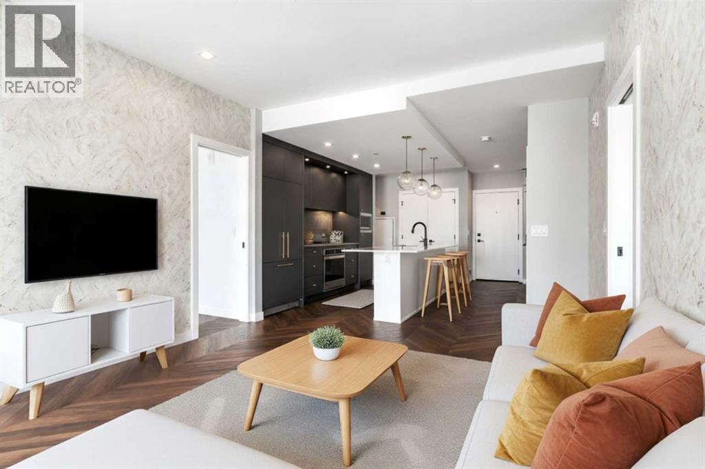 Experience elevated living in this stunning sub-penthouse condo in the heart of West District, Calgary’s most exciting new master-planned urban community on the west side. With nearly 1,000 sq. ft. of thoughtfully designed living space, this home blends luxury, comfort, and convenience in a way that’s hard to find.Inside, the layout is exceptionally functional boasting two spacious bedrooms, each with its own private 4-piece ensuite—perfect for guests, roommates, or a refined primary suite plus dedicated office. A separate powder room offers added convenience rarely found in condos of this size. Luxury vinyl plank flooring graces the main living areas offering durability and style and unique mosaic tile flooring in the bathrooms, adding texture and a designer touch.The open-concept kitchen and living area flow seamlessly toward an expanded north-facing deck, where you and your guests will enjoy unobstructed views, including a direct sightline to the iconic Calgary Olympic ski jump. Whether you’re entertaining or unwinding, this outdoor space becomes an extension of your home.As a sub-penthouse, this unit offers the rare advantage of no upstairs neighbours, creating a quiet, peaceful retreat above the energy of the city.Step outside and you’re immersed in the vibrant lifestyle that defines the West District. This elite, walkable neighbourhood offers trendy coffee shops, numerous restaurants and boutique stores, and a brand-new grocery store right across the street. The cherry on top is definitely the newly-opened Radio Park; a beautifully designed urban green space perfect for relaxation, recreation, and community connection.Although set in the suburbs, West District offers unmatched accessibility. You’re minutes from downtown, steps from Calgary’s new ring road, and less than an hour from the world-famous Rocky Mountains—making weekday commutes and weekend adventures equally effortless.This condo delivers the perfect blend of luxury finishes, thoughtful design , and an unbeatable location. It’s not just a home—it’s a lifestyle. (id:6769