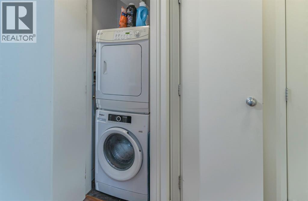 Fully furnished modern 1 bed/1bath condo unit on the "Flats Tower" of The Prestigious Waterfront Condo, Calgary's upscale Downtown neighborhood. Open concept floor plan, 9' ceilings, floor to ceiling windows. End unit & balcony is exposed to the view of the beautiful courtyard. Kitchen is fully equipped with high-end stainless steel appliances. Quartz central island & countertop. Full heights cabinetry. Bedroom has built-in head board, double bed-frame & 2 night tables. In-suite laundry & air conditioned. Unit includes an assigned parking stall & a storage locker. Enjoy living in a resort style building with superior amenities : concierge service, fitness facilities, hot tub, sauna, movie theatre, social lounge, outdoor garden patio, visitor parking & car wash. Move in & enjoy the lifestyle of a waterfront community along the Bow River & Princess Island Park. Walking distance to Downtown, Chinatown, East Village & Eau Claire Market, shops & restaurants. Bike or walk along the water path. Perfect for first time buyers or as an investment property. A great property to consider. (id:6769