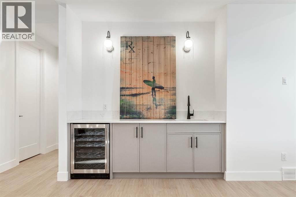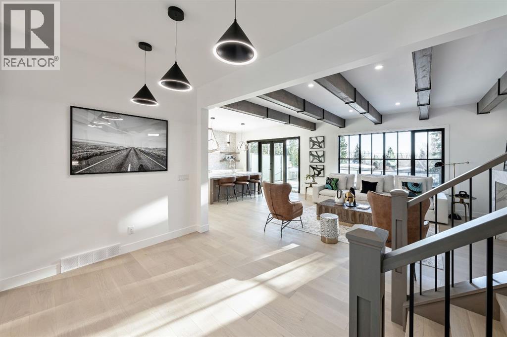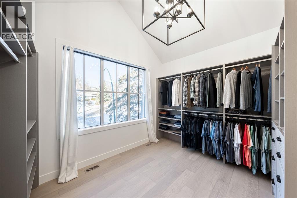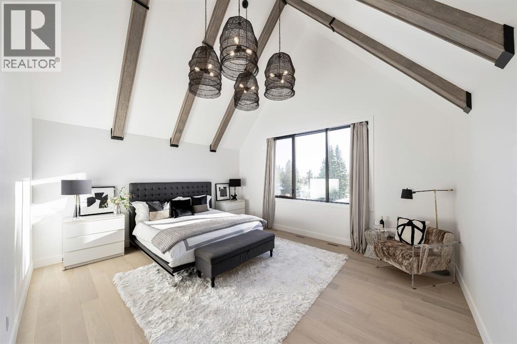 Stunning and unique best describes this modern masterpiece built by Elite Urban Concepts that draws inspirations from the wineries of California with a modern flair that checks all the boxes on one’s wish list. With over 4800 square feet of developed space and a fully finished walkout basement, there is plenty of room for a family, entertaining, working from home or relaxing on the weekends. With an open floor concept, you are immediately welcomed with hardwood floors that are complimented with the tall ceilings adorned with open beams in the living room and, tons of natural light from the abundant black cased windows. A large chef inspired kitchen that features beautiful hood fan as the centerpiece, accented with stainless-steel appliances, a separate butler pantry and, large custom wood cabinets that opens to a massive upper deck overlooking the backyard with a mountain view. Upstairs is perfect for family living with a bonus room that is central to an upper laundry room, two bedrooms and, a primary bedroom all of which have their own ensuites. Yes, you read that right, each upstairs bedroom has its own private ensuite. The primary bedroom is enormous with tons of natural light, vaulted ceilings with open beams, a view of the mountains and, a custom walk-in closet that will accommodate anyone’s needs. The beautifully crafted master ensuite features a spa like experience with large tile, wood accents, a soaker tub and a twinned shower that rivals a high-end hotel. The walkout basement is custom built for entertainment with tall ceilings accented with open beams, a custom-built stylish bar and a huge family room that has double French doors to the lower covered patio and fenced backyard, for that indoor outdoor flow. The additional open style room allows for your home gym that will take advantage of the natural light. The basement mudroom has an abundant amount of storage that leads out to the attached garage. The triple garage is large enough for your vehicles and toys. This beautiful gem in the heart of Charleswood is the perfect location, across from a park overlooked by Nose Hill Park, the location is perfect. (id:6769
