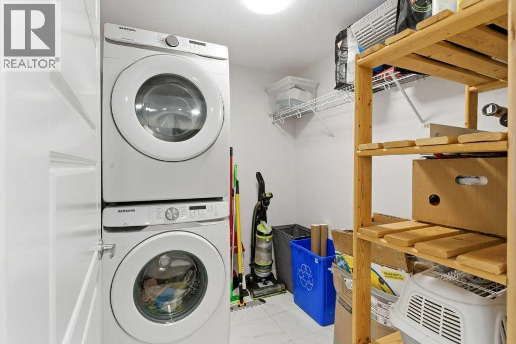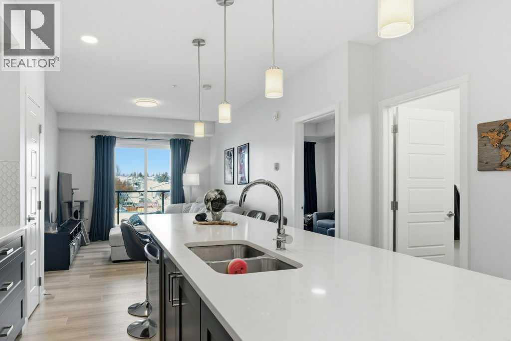 Experience elevated condo living at The Rise of Harvest Hills in this impeccably upgraded third-floor unit offering two bedrooms and two full bathrooms with a true show-suite feel. Flooded with natural light from expansive windows and enhanced by 9’ ceilings, the open-concept layout is both airy and inviting. The designer kitchen features quartz countertops, a custom tile backsplash, two-tone white and deep blue cabinetry, premium stainless steel appliances including a fridge with ice and water, a large island, perfect for everyday living or entertaining. The primary bedroom is a private retreat with a walk-in closet and a spa-inspired ensuite showcasing illuminated vanity mirrors, while the second bedroom is ideally positioned next to a stylish four-piece bath with tub, making it perfect for guests or roommates. Enjoy the convenience of in-suite laundry with added storage, a large sunny balcony with gas line for BBQs, titled underground parking, and a secure, well-managed building. Located just steps from shopping, dining, parks, and pathways, with quick access to Deerfoot and Stoney Trail. Great for frequent travellers with quick access to the airport. This move-in-ready condo offers luxury, comfort, and unbeatable convenience in one of Calgary’s most connected communities. (id:6769