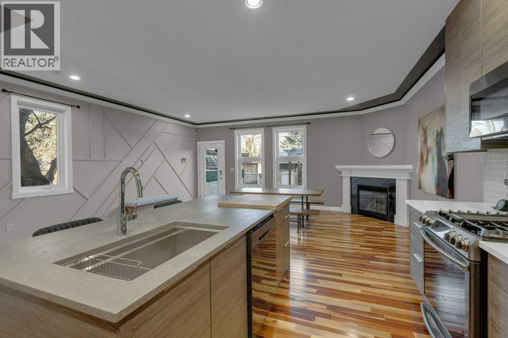 Gorgeous, move-in-ready home featuring rich Tigerwood hardwood floors and a tiled entry. The stunning, updated kitchen boasts quartz countertops, stainless steel appliances, a corner pantry, and a large island that opens seamlessly to the family room with a cozy gas fireplace and access to a spacious deck overlooking a private, fenced backyard.The main floor showcases 9-foot ceilings and elegant back-lit crown moldings throughout. A striking staircase with maple railings, iron spindles, and a skylight creates a bright and inviting transition to the upper level.Upstairs, the primary bedroom offers a walk-in closet and private balcony with glass railing and scenic south hillside escarpment views. The spa-like ensuite features granite countertops, a jetted tub, and a separate shower. A convenient second-floor laundry room completes this level. All bathrooms are finished with tile floors, backsplashes, and tiled tub surrounds.The fully finished basement continues the 9-foot ceilings and includes a spacious fourth bedroom, providing ideal space for guests, a home office, or extended family. Completing the home is a double detached garage, offering ample parking and storage. (id:6769