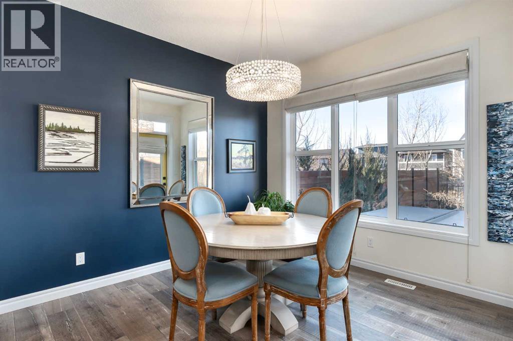 Located in the highly desired, quiet, and safe community of Riverstone, this 3-bedroom Trico-built home is an absolute stunner, offering upgrades and tasteful finishings throughout. A stunning chef’s kitchen features under-cabinet lighting, soft-close cabinets, built-in appliances, a large island, and a deluxe coffee bar that matches the ambiance of the rest of the kitchen, with access to the walk-in pantry. The main level also has a perfectly decorated guest bathroom, a convenient back entry with a built-in bench, a spacious living room that hosts a gas fireplace, and a dining area that overlooks the private backyard and greenspace.Upstairs, you will find your family room that is wired for surround sound, three bedrooms, a functional laundry room with extra storage, a 4-piece washroom, and the primary bedroom that is flooded with natural light. The spa-like ensuite features a show-stopping shower that is fully tiled, a great-sized soaker tub, a double vanity, a large walk-in closet, and a convenient pocket door that separates the toilet space. The fully finished basement is perfect for entertaining, with a built in bar and electric fireplace plus plenty of storage, with potential for a fourth bedroom and another full bathroom. This home backs onto a greenspace and has a professionally landscaped private backyard with a miniature cherry tree, pear tree, paver blocks, a BBQ gas line, and mature perennials offering privacy and peace. The Bow River and fishing are just a few steps from your back door, with access to the walking path right out your back gate.With a new state-of-the-art kids’ park at the end of the road, this home and neighbourhood truly have it all. Riverstone in Cranston is a nature-focused community that offers walking paths, skating, a splash park, as well as shopping amenities, schools, and quick, easy access to Stoney Trail. Please click the multimedia tab for an interactive 3D tour, additional photos, and floor plans. (id:6769
