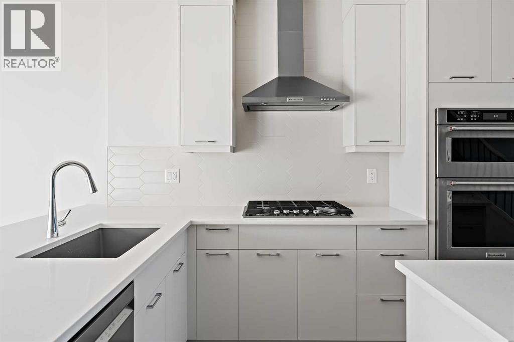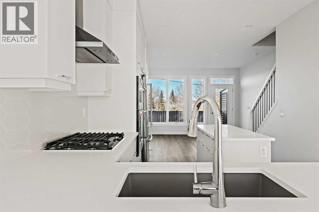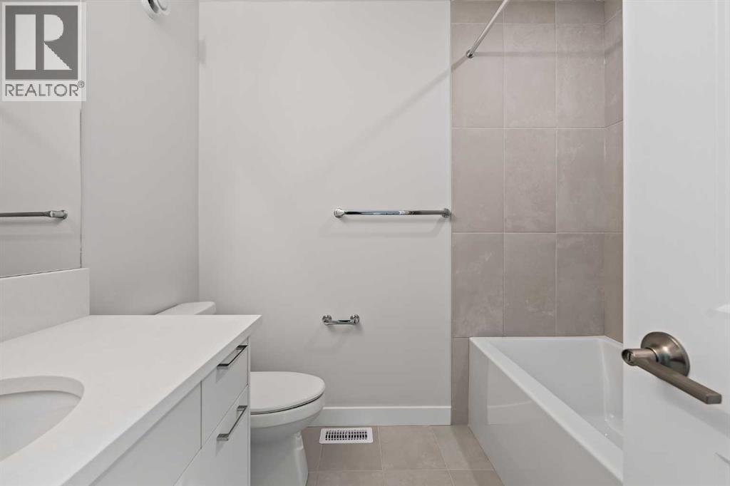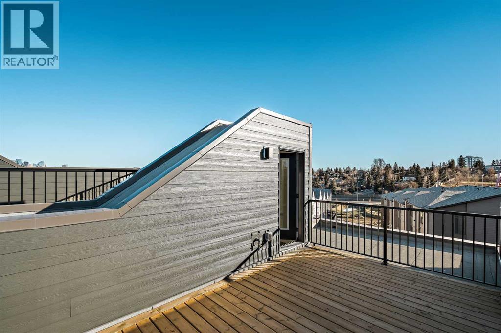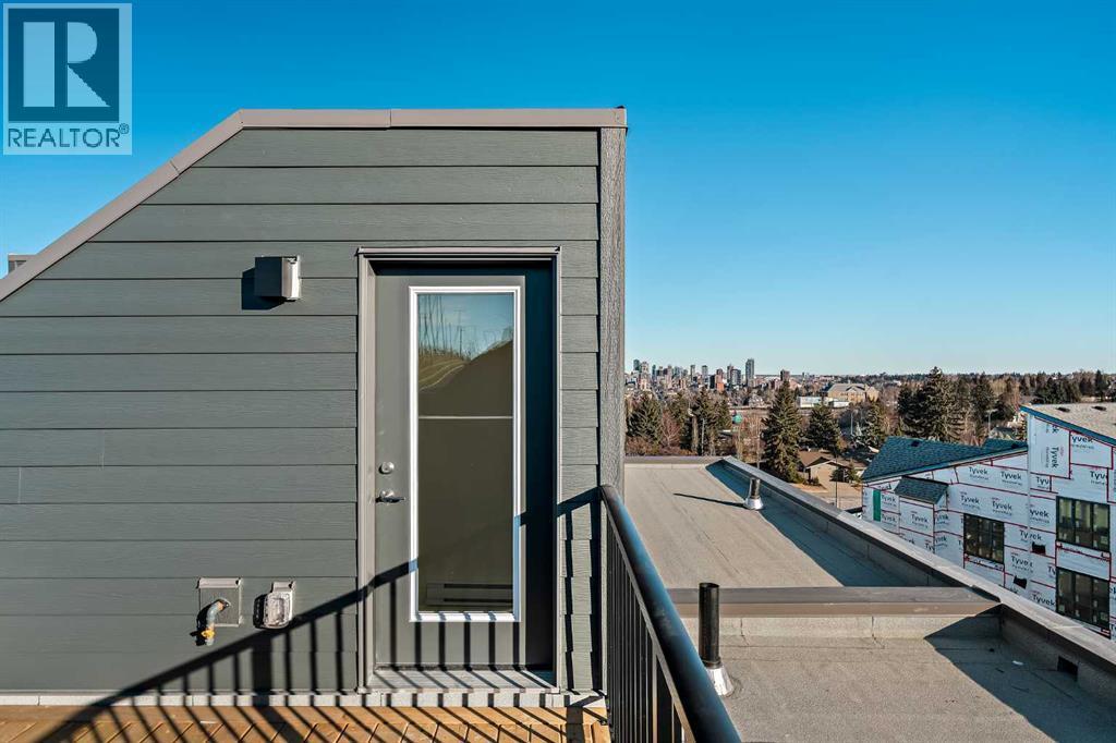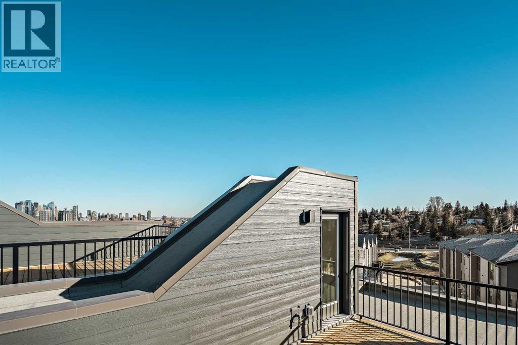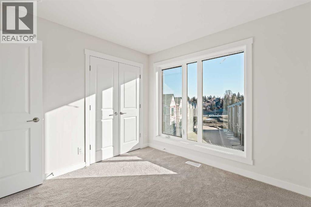 Welcome to The Alameda by Brookfield Residential - where modern design meets urban convenience, just minutes from downtown Calgary with stunning views! This beautiful 2-bedroom, 2.5-bathroom townhome offers over 1,500 sq. ft. of thoughtfully designed living space, complete with a single attached garage and a spacious main-level flex room - perfect for a home office, gym, or creative studio + 3 outdoor living spaces including a rooftop patio! The lower level features an expansive flex room spanning ~14'x14' with soaring 10' ceilings and a wall of windows overlooking your private patio and the front street. Experience open-concept living on the main level highlighted by 9’ ceilings throughout with oversized triple-pane windows at either end providing endless natural light all year long. The kitchen is a chef’s dream, featuring KitchenAid gourmet appliances, including a gas cooktop, wall oven/microwave, and a chimney hood fan, all complemented by elegant finishes and generous counter space and a pantry. The timeless white kitchen is central to the main level, opening to both the dining area and great room, creating the ideal space for entertaining. The great room has direct access to the main level balcony that spans 15' x 9'8" and includes a BBQ gas line for everyday convenience. The upper level features a large primary suite complete with walk-in closet and a private 4pc ensuite with dual sinks and a tiled walk-in shower. A large second bedroom, full bathroom and laundry complete the upper level. The top level of the home is where you'll spend your summers - soaking up the sun on your private ~200 ft2 rooftop patio with views overlooking the Shaganappi golf course and stunning views to the south and downtown Calgary! Complete with 2 living areas, 2 bedrooms, 2.5 bathrooms and 3 outdoor living spaces + a private attached garage, this home is perfect for professionals or down-sizers that appreciate convenience. Located away from Bow Trail, this premium location offers a quiet space for daily living with convenient access to the CTrain and downtown Calgary just minutes away. Additional features include convenient street parking in front, and full builder warranty + Alberta New Home Warranty - allowing you to purchase with peace of mind. This maintenance-free home is fully move-in ready with free legal fees for the purchaser in desirable Crown Park! (id:6769