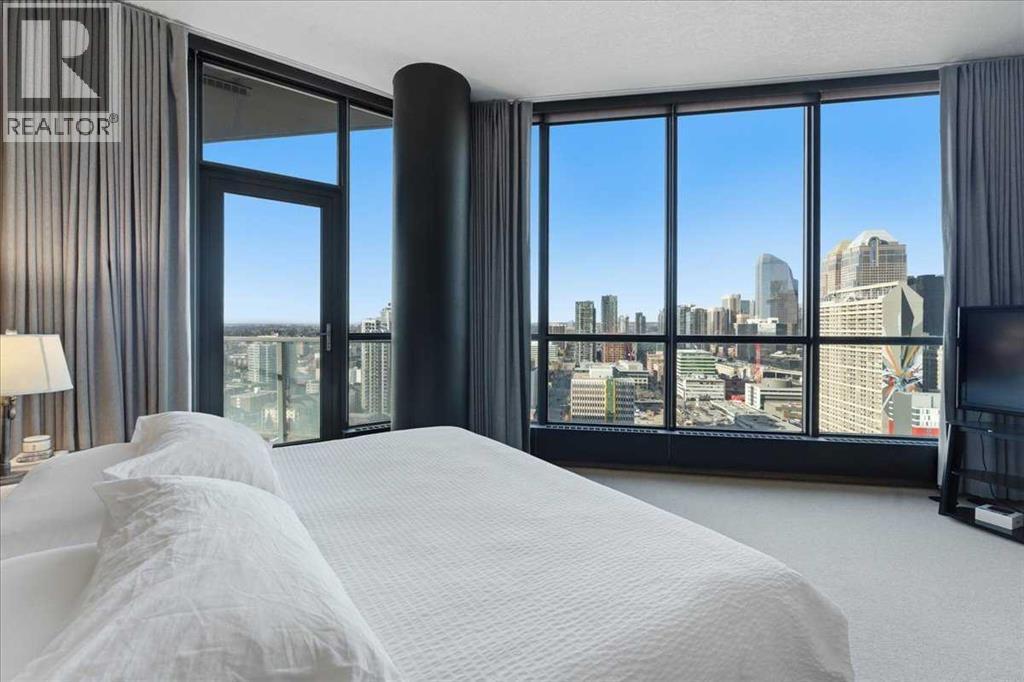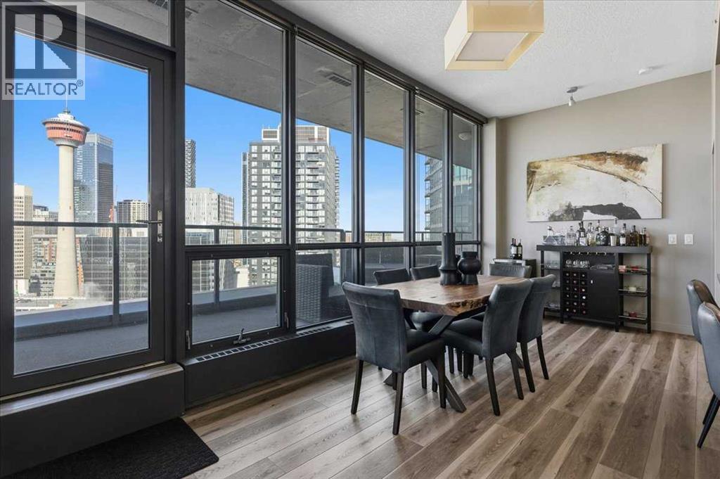 Situated in the heart of Beltline, Keynote One offers ultra convenient downtown living just steps to Stampede Park, BMO Centre, and Calgary's Saddledome. This Sub-Penthouse offers an exclusive EXTENDED balcony, plus TWO TITLED VIP parking stalls - a rarity in this building! With soaring floor to ceiling windows, second balcony off the master bedroom, and breath-taking views of the cities' skyline, this unit is a one-of-a-kind. Upgrades include new Vinyl Plank flooring, washer/dryer, water filtration system (ion filter), and new sink. Open concept, modern and industrial describe the vibe of this layout featuring TWO bed / TWO baths, boasting unbeatable privacy and functionality. Lie in your master retreat, enjoy the two-way fireplace, soak in the first- class views of the Calgary Tower and city skyline. Feel the grandness of the master ensuite with second balcony, double sinks, separate shower, massive tub, and OVER-SIZED double walk -in closet with custom California Closet built -ins. Keynote offers an on-site manager, access to the fully equipped fitness facilities (weights and cardio room), two guest suites, owner’s lounge with TVs, pool table, partial kitchen, BBQs, outdoor patio, plus 15 rooftop oasis, bike storage, and direct access to Sunterra Market. This unbeatable location offers high-quality living, the Plus 15 Skywalk system, and easy access to main thoroughfares for city-wide access. Weather you are looking for your next home or a prime investment opportunity, this is downtown living done right. (id:6769