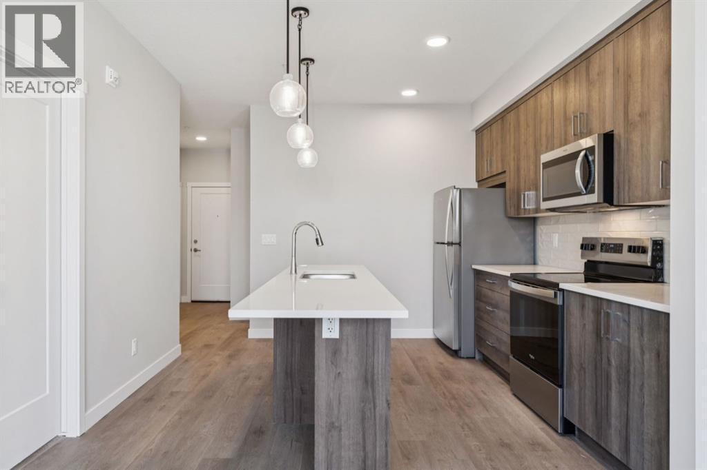 Modern 2-Bedroom Condo in Fish Creek Exchange Welcome to this brand-new 2-bedroom, 2-bathroom home in the 2025 Fish Creek Exchange development, located in the sought-after community of Shawnee Slopes. Offering 732 sq ft (builder size), this thoughtfully designed condo features high ceilings, luxury vinyl plank flooring, and a stylish kitchen complete with quartz countertops, stainless steel appliances, and full-height cabinetry. The open-concept layout extends to a private west-facing balcony, perfect for enjoying morning coffee, summer evenings, or a breath of fresh air with the best Calgary Sunsets. Convenience is built in with titled underground parking and a secure titled storage cage. Just steps from the Fish CreekâLacombe LRT Station and minutes from the trails of Fish Creek Provincial Park, this home combines modern living with easy access to nature, transit, and nearby amenities. (id:6769