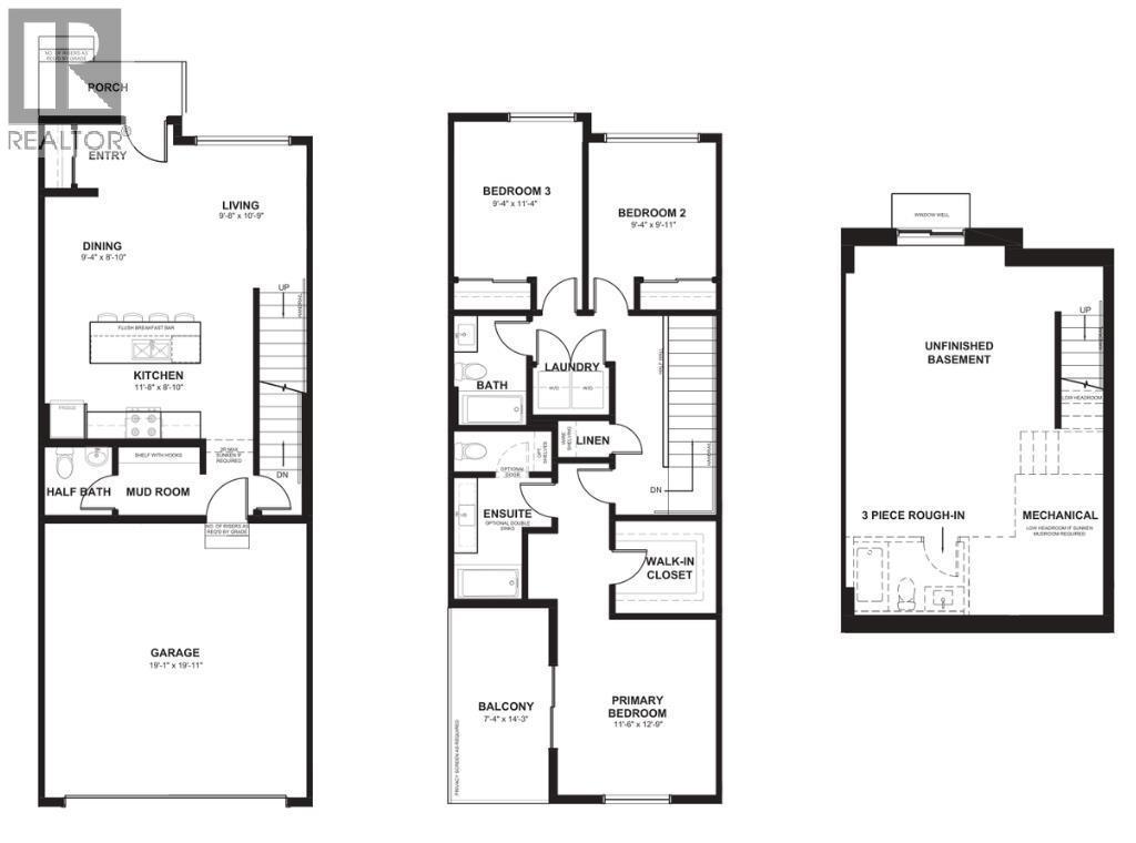 NEW BUILD TOWNHOUSE | NO CONDO FEE | 3 BED / 2.5 BATH / 1480 SQ FT | REAR ATTACHED DOUBLE GARAGE | 9 FT CEILINGS | UNDEVELOPED BASEMENT | EST. Q4 2026 POSSESSION – Welcome to the Briar model by Minto Communities, an award-winning Canadian builder, located in East Hills Crossing, one of southeast Calgary’s fastest-growing and most convenient communities. These thoughtfully designed lane townhomes offer modern finishes, functional layouts, and long-term value in a location that truly stands out. The main floor features a bright, open-concept design with 9-foot ceilings, creating a spacious and airy feel throughout. The layout opens into a generous living room, perfect for everyday living or entertaining. At the heart of the home is the kitchen, complete with a central island, stainless steel appliances, and contemporary finishes, seamlessly connecting to the dining area just off to the side. The front of the home features a large living room and a spacious entryway. At the rear of the home. A convenient half bath and mudroom are tucked away at the back, providing direct access to the rear attached double garage, keeping daily life organized and efficient. Upstairs, you’ll find a well-planned upper level designed for comfort and privacy. The primary bedroom is spacious enough to accommodate a king-sized bed and includes a walk-in closet along with a 4-piece ensuite. Adding even more appeal is a large private balcony located above the garage, an ideal spot to enjoy morning coffee or unwind in the evening. Two additional well-sized bedrooms, a full 4-piece bathroom, upper-floor laundry, and a linen closet complete this level.The home also includes a full, undeveloped basement with rough-in for a 3-piece bathroom, offering excellent future potential to add a large recreation space, and additional storage as your needs evolve. Ideally situated across from East Hills Crossing Shopping Centre and Costco, this location offers unmatched convenience with shopping, dinin g, and services just steps away. Public transit is nearby, providing a quick and easy commute to downtown Calgary in minutes. East Hills itself is a vibrant, well-connected southeast community, known for its thoughtful planning, green spaces, pathways, and easy access to major roadways and 17 Ave SE. Combining modern design, a functional floor plan, and an unbeatable location, this is an excellent opportunity to secure a brand-new home in East Hills with estimated completion in Q4 2026. Don’t miss your chance to be part of this exciting community! Book your visit at the presentation centre today for more details! *Photos are representative.* (id:6769