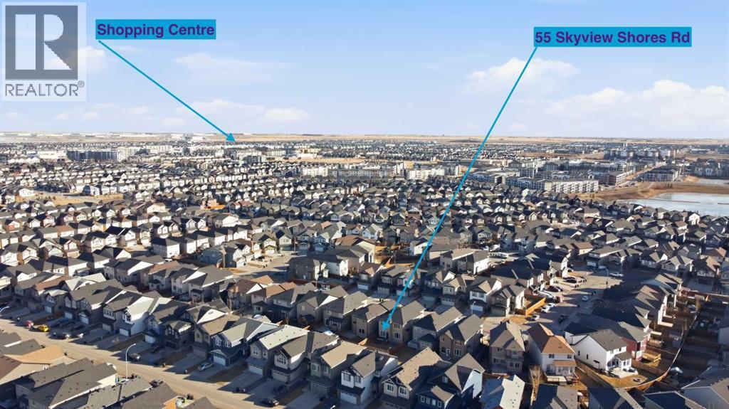 Welcome to 55 Skyview Shores Road NE—an exceptional home offering 5 bedrooms plus a den, and 3.5 baths. With over 3,100 sq. ft. of developed living space across three levels this home is a must see! Built by Shane Homes and meticulously maintained, this property also features new Hardie Board siding and a Class 4 roof for enhanced durability and weather protection.An added advantage is the City-registered legal suite (BP2025-09310), providing outstanding flexibility for extended family living or rental income.Step inside to a bright and functional main level featuring granite countertops, hardwood flooring, iron spindle railings, knock-down ceilings, and upgraded stainless steel appliances. The spacious kitchen offers a walk-in pantry, an extended granite island, and direct access to the deck. A welcoming family room with a gas fireplace, along with separate living and dining areas, make this level ideal for both everyday living and entertaining.Upstairs, you’ll find a generous layout that includes a vaulted bonus room, a comfortable primary suite with a 5-piece ensuite (double sinks, soaker tub, separate shower), and a walk-in closet. Two additional large bedrooms each feature walk-in closets and space for a computer desk. Convenient upper-level laundry adds practicality to the second floor.The legal secondary suite offers a private entrance and a thoughtfully designed layout.Additional highlights include an insulated double attached garage with a sink and 220V wiring, as well as a fully fenced and landscaped yard. Ideally located close to major routes, schools, parks, shopping, transit, and just 6 minutes from the airport, this home combines comfort, convenience, and income potential in one of NE Calgary’s most desirable communities.Easy to show and truly a must-see! (id:6769