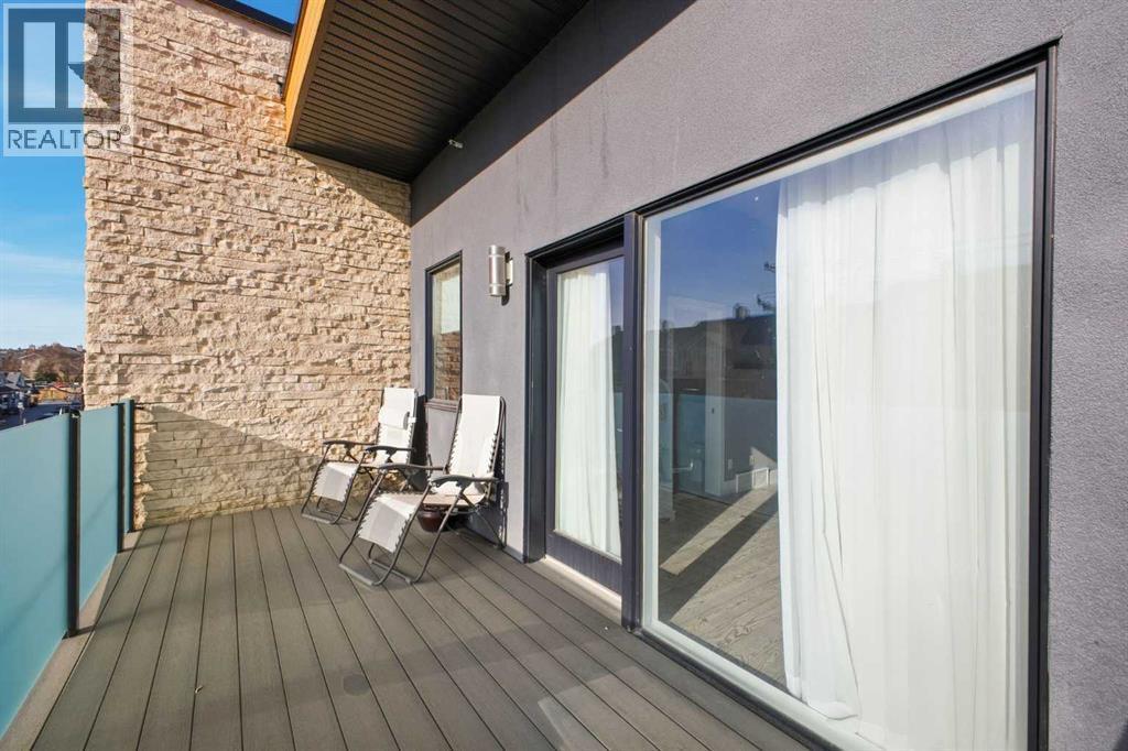 OPEN HOUSE SATURDAY, MARCH 14TH & SUNDAY, MARCH 15TH FROM 1-4 PM BOTH DAYS. Gorgeous upscale 3 bedroom townhome in the heart of South Calgary offering over 2100 sq ft of living space & an ELEVATOR SERVING ALL 3 LEVELS! The open & airy main level presents wide plank hardwood floors, lofty ceilings & is drenched in natural light, showcasing the spacious living room that’s anchored by a feature fireplace & has access to a private deck with outdoor fireplace. The dining area with stylish light fixture provides ample space to host family & friends & seamlessly flows into the kitchen that’s tastefully finished with granite counter tops, island/eating bar, plenty of storage space, stainless steel appliances & cozy breakfast nook with access to the north balcony with BBQ gas hookup. A 2 piece powder room completes the main level. The second level hosts 3 bedrooms plus 4 piece main bath & laundry facilities. The generously sized primary retreat with private balcony boasts a walk-in closet & luxurious 5 piece ensuite with marble flooring, dual sinks, relaxing soaker tub & rejuvenating steam shower. Other notable features include an elevator, central air conditioning, built-in speakers & single attached garage. The prime location is incredibly convenient, walking distance to vibrant Marda Loop, River Park, Marda Loop CA, schools, shopping, public transit & effortless access to 14th Street & Crowchild Trail. (id:6769
