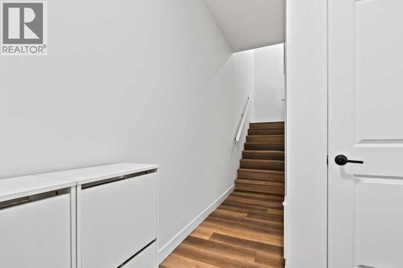 Welcome home to this beautifully maintained townhome in Crown Park, Calgary’s newest inner-city community. Offering over 1,300 sq. ft. of thoughtfully designed living space, this home features 2 bedrooms, 2.5 bathrooms, a private single attached garage, and a convenient driveway for additional parking. This well-appointed 3-storey townhome showcases an open-concept floor plan designed for both everyday living and entertaining. The layout places the kitchen between the living room and dining area, creating a seamless flow throughout the main level, ideal for entertaining or for families with children. The kitchen is finished with full-height soft-close cabinetry, quartz countertops, a large pantry, and a stainless-steel appliance package that includes an electric range, chimney hood fan, and built-in microwave. Just off the dining area is access to a spacious private balcony spanning the entire width of the home, perfect for outdoor relaxation or hosting guests. Luxury vinyl plank flooring runs throughout the main level, while large windows and 9-foot ceilings enhance the bright, inviting atmosphere. The same luxury vinyl plank flooring continues up the stairs and throughout the upper level, offering a carpet-free interior that is both pet-friendly and easy to maintain. Upstairs, the primary bedroom features a walk-through wardrobe and private ensuite complete with a walk-in shower. A second generously sized bedroom, an additional full bathroom, and convenient upper-level laundry complete the upper floor. The main entry level includes a welcoming foyer with a coat closet and access to a discreetly located 2-piece powder room for guests. Situated in the highly desirable Crown Park community, this home offers an exceptional location near Shaganappi Golf Course, walking trails along the Bow River, transit access, and a wide array of nearby dining, shopping, and entertainment amenities. Perfect for professionals, couples, or downsizers seeking low-maintenance living in a prime inner-city setting. (id:6769