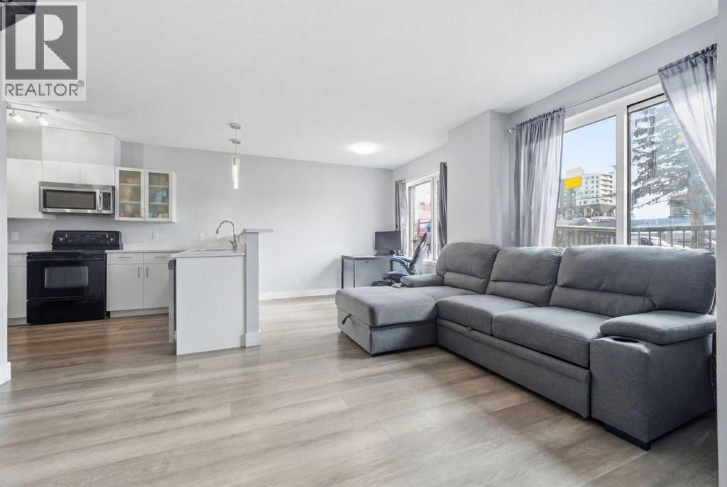 Welcome to this beautifully updated, south-facing ground-level condo in the heart of downtown Calgary — a rare offering with no neighbors on either side, as the only ground-floor unit in the building.Enjoy incredible natural light all day with two south-facing living room windows, a south-facing bedroom window, and a south-facing private balcony. The open-concept layout features stylish LVP flooring, quartz countertops, stainless steel appliances, in-suite laundry, and a cozy double-sided fireplace connecting the living space and bedroom.This well-maintained unit offers modern finishes throughout and a smart layout that maximizes both comfort and functionality — perfect for professionals, investors, or first-time buyers.Located just steps from BMO Centre and the iconic Calgary Stampede Grounds, you’ll love being close to transit, dining, entertainment, and everything downtown has to offer.Well-priced, move-in ready, and in a fantastic central location — this is urban living at its best. (id:6769