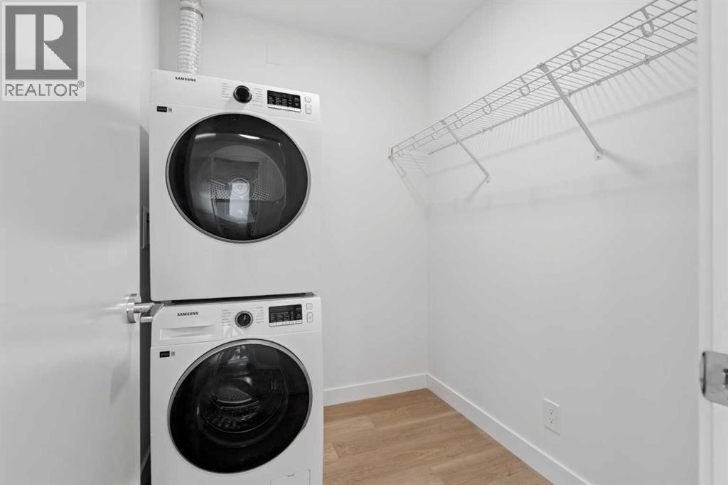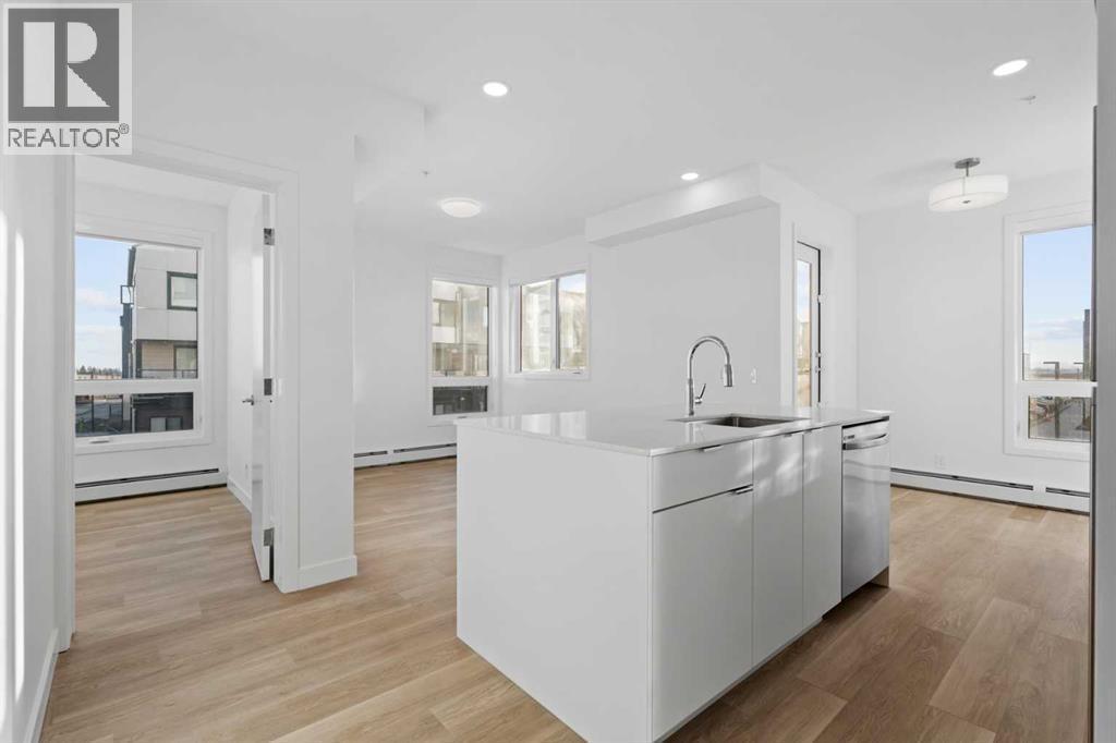 BRAND NEW CORNER UNIT | 2 BED / 2 BATH / 802 SQ FT | MODERN FINISHES | LOW CONDO FEES | UNDERGROUND TITLED PARKING – Welcome to East Hills by Minto Communities, an award-winning Canadian builder with over 70 years of experience. This condo complex is located in the growing community of Belvedere, just steps from East Hills Shopping Centre. Designed to foster a true sense of community, East Hills features pedestrian pathways, nearby greenspace, and a walkable, neighbour-friendly layout. Enjoy unbeatable convenience with Costco, Walmart, banks, restaurants, and everyday essentials right across the street, along with quick access to major roadways and public transit for an easy commute downtown or around the city. This brand-new corner 2 bedroom, 2 bathroom condo offers a smart and functional layout with a well-designed living space and modern finishes throughout. The kitchen sits at the heart of the home and features a large island, stainless steel appliances, and ample cabinetry and storage. Just off the kitchen is the dedicated dining area, which leads to your private southwest-facing balcony—perfect for soaking up the sun and enjoying summer evenings.Back inside, the spacious living room is located across from the kitchen, creating a bright and inviting open-concept layout ideal for both everyday living and entertaining. The thoughtfully designed split-bedroom floor plan provides excellent privacy. The primary bedroom is generously sized and includes a walk-in closet and a 3-piece ensuite. The second bedroom is also well-sized and features a walk-through closet with a pocket door that connects directly to the additional 4-piece bathroom—an ideal setup for guests, roommates, or a home office.Additional storage and in-suite laundry are conveniently located at the front of the home beside the foyer, completing this functional and well-appointed condo.Additional highlights include underground titled parking, a pet-friendly building (with restrictions), access to a n on-site fitness centre located in Building 3000, and a rooftop patio in Building 1000 + Building 4000—available to all residents—enhancing the lifestyle appeal of this low-maintenance home. With modern design, low condo fees, and an exceptional location, this is an excellent opportunity for first-time buyers, investors, or those looking to downsize in one of southeast Calgary’s most convenient communities. Contact Minto’s sales staff and book your visit today! (id:6769