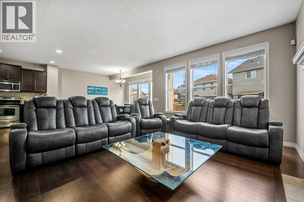 Tucked away on a quiet cul-de-sac, this well-appointed home offers a SE-facing backyard, double attached garage, and numerous upgrades throughout. The exterior features vinyl and stone accents with asphalt shingles, plus brand new fascia, gutters, and shingles (2026). The insulated and drywalled garage is EV-ready with a dedicated charger.Step inside to a tiled entryway with 9’ knockdown ceilings and a convenient tiled 2-piece bathroom that connects through to the family-sized mudroom. Dual closets, solid core doors, and a walk-through pantry provide excellent functionality and storage. The main living area showcases hardwood flooring, a focal gas fireplace with tile surround and mantle, and a spacious extended family size dining area with garden door access to the upper deck, complete with a BBQ gas line.The open-concept kitchen is ideal for entertaining, featuring granite countertops, an island peninsula with raised eating bar and added seating, extended-height cabinetry, pot lighting, tiled backsplash, and stainless steel appliances including a smooth-top stove, French door fridge, dishwasher, and over-the-range microwave.Upstairs offers 8’ knockdown ceilings, an open rail staircase, central bonus room, dual linen closets and additional loft space. The primary bedroom is located at the front of the home and includes alarm rough-in, his-and-hers walk-in closets, and a luxurious tiled 5-piece ensuite with dual sinks, storage vanity, deep soaker tub, separate shower, and water niche. Two additional generously sized bedrooms are positioned at the back of the home, both with dual-door closets and backyard views, and share a tiled 4-piece bathroom with extra linen storage. A tiled upper-floor laundry room adds everyday convenience.The Walkout basement with separate entry is undeveloped with 9’ ceilings and sunshine windows, offering excellent potential for future development as part of the home or a lower level suite (with all the proper permits and plans appro ved by the City of Calgary) with space for a recreation area, flex space, fourth and fifth bedrooms, and a rough-in bathroom. Mechanical systems, including the high-efficiency furnace, hot water tank, electrical panel, and smart home box, are thoughtfully grouped together.Situated on a traditional lot, the fenced and landscaped backyard includes lower-level access via a garden door. A well-maintained, functional home in a desirable cul-de-sac setting—ideal for families seeking space, comfort, and future potential with easy access to grocery stores (Super Store, Costco, Save on Foods, No Frills) Elementary, Middle and High Schools, a variety of restaurants, Calgary transit, Vivo Recreation Place, Community Center with a splash park, tennis courts, picnic areas and more! (id:6769