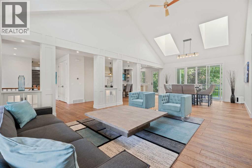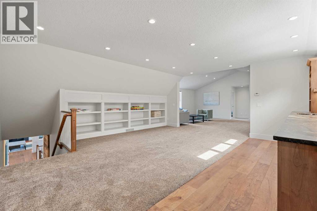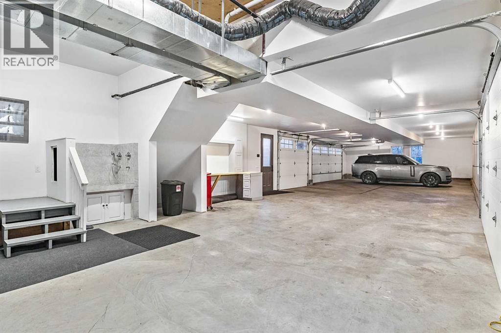 Car enthusiasts!! Set on 5.14 acres of stunning treed and open landscape, just minutes from Calgary and Okotoks, this exceptional custom-built modern farmhouse offers a rare balance of architectural refinement, privacy, and natural beauty. Designed for those who appreciate craftsmanship and quiet luxury, the home presents as a private estate—serene, elegant, and timeless. A paved, curved driveway leads to a gated entrance, introducing a picturesque setting of green space and mature trees. Inside, 17-foot vaulted ceilings and expansive windows fill the main living spaces with natural light, creating an immediate sense of openness and calm. The living room is anchored by a refined gas fireplace and custom built-ins, offering a warm and inviting atmosphere for both everyday living and intimate gatherings.At the heart of the home, a chef-inspired kitchen blends beauty and function, featuring premium Miele appliances, a substantial island with hammered stainless vegetable sink, and a concealed walk-in pantry. The adjoining dining area, enhanced by skylights, flows seamlessly onto a wrap-around deck through French doors—perfect for alfresco dining and peaceful moments overlooking the stunning views.The main-floor primary retreat is a sanctuary of comfort, with vaulted ceilings, a barn wood feature wall, and a spa-inspired ensuite complete with in-floor heating, freestanding soaking tub, walk-in glass shower, and a custom-fitted walk-in closet. A dedicated office, laundry room, and mudroom complete the main level with thoughtful functionality. Upstairs, above the garage, is a versatile bonus room with built-in bar and games area provides an inviting space for relaxation or entertaining, while two additional bedrooms with window seats share a beautifully appointed bathroom. The fully developed lower level offers a billiards area, full bar, spacious recreation room, and two more bedrooms—ideal for hosting guests.The HEATED 5-CAR GARAGE has 3 garage doors has dog wash and a work bench. With an RV hook-up, and private walking paths throughout the fully fenced property, this estate delivers elevated acreage living just moments from some of Heritage Pointe, Carmoney and Cottonwood Golf Courses plus city convenience. Contact your favourite realtor today to arrange a private showing. (id:6769