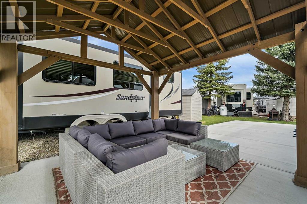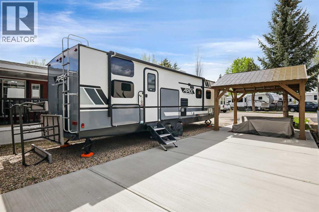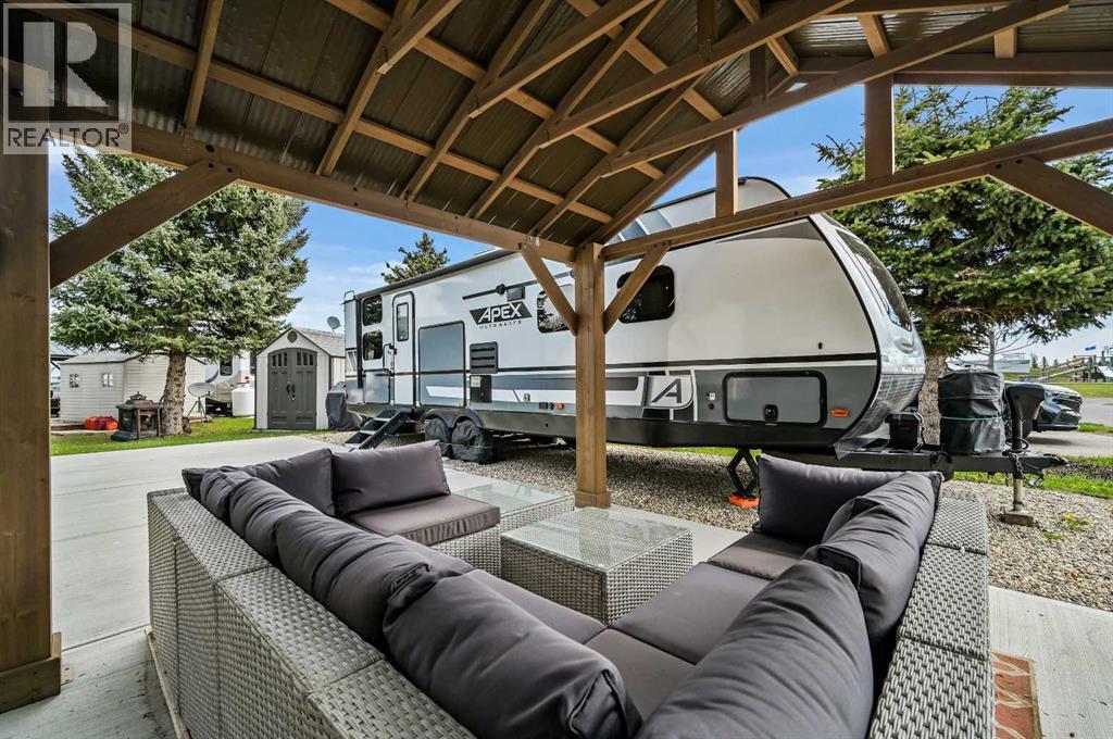 Welcome to Country Lane Estates, a gated and secure seasonal RV community just 15 minutes south of Calgary. Whether you're a snowbird, weekender, or a family seeking a peaceful spring and summer retreat, this highly sought-after community offers the perfect blend of relaxation, recreation, and convenience. This prime lot is ideally situated near the clubhouse, pool, playground, and park—placing you right at the center of all the amenities while still offering a private and serene space to unwind. The property comes fully move-in ready with a 2021 Coachmen Apex 28-foot trailer in pristine condition, providing modern comfort and functionality. The concrete pad ensures clean, low-maintenance outdoor living, while a gazebo offers the perfect shaded space for relaxing or entertaining. A storage shed on the lot adds both convenience and versatility—ideal for storing tools, bikes, or hobby gear. The landscaping has been thoughtfully designed for minimal upkeep, giving you more time to enjoy the season without the stress of maintenance. Full RV hookups are in place. This is a dog-friendly community with riverside walking paths and an off-leash dog park, making it an ideal spot for pet owners. The welcoming atmosphere is further enhanced by a vibrant social calendar, including weekly events and activities that bring residents together. Located just minutes from Okotoks and High River, and with easy highway access to Calgary, this property offers the best of both worlds—peaceful country living with the convenience of nearby city amenities. Whether you're seeking a weekend escape or a full-season getaway, this upgraded lot with trailer and thoughtful outdoor features is ready for you to enjoy from the moment you arrive. Don’t miss this rare opportunity to own a turn-key retreat in one of southern Alberta’s most desirable seasonal RV communities. (id:6769