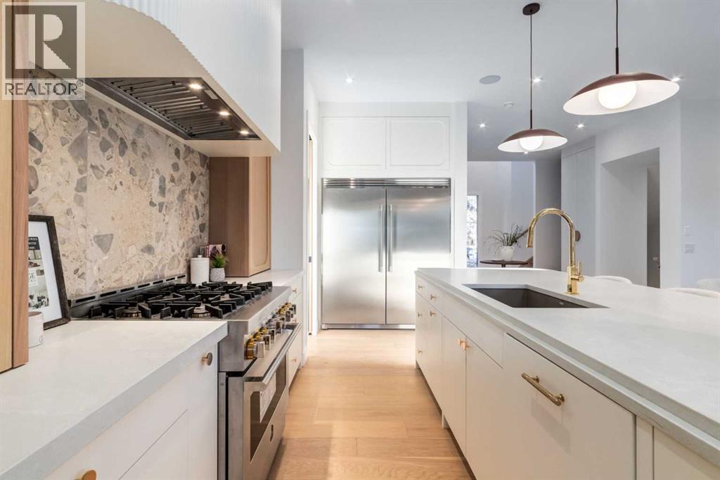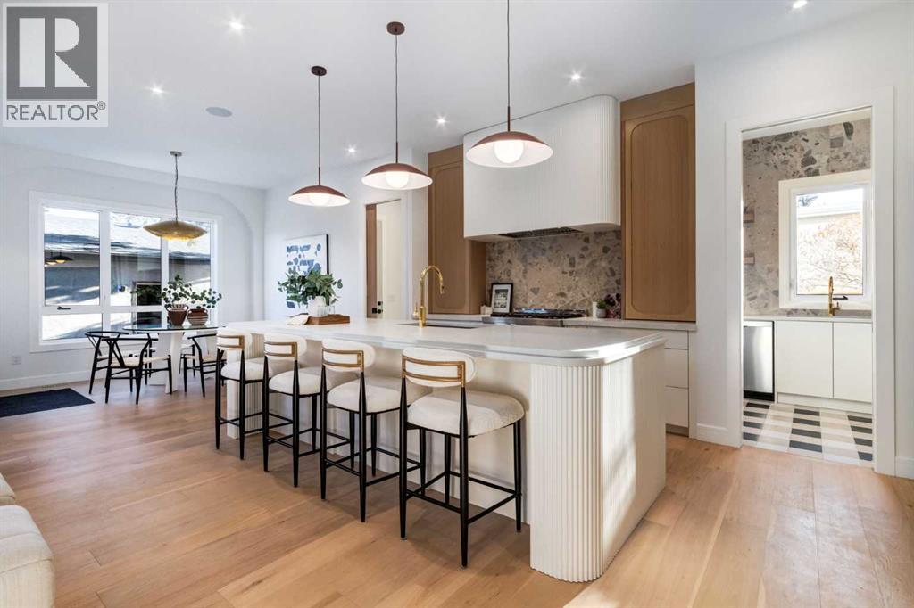 OPEN HOUSE – Mar 7, 12:00-3:00 PM!! Welcome to 8812 33 Avenue NW, an exceptional brand-new luxury residence by Platinum Build Homes, masterfully designed by Maxime Chin Designs. Situated on a wide lot in Bowness, this home offers 3,800 sq ft of fresh, thoughtful, and unique living space.From the striking curb appeal with a fenced front yard and brick exterior accent , to the covered front porch that welcomes you in, every detail exudes craftsmanship. Step inside a grand foyer with 10 ft ceilings that flow seamlessly through the main floor. To the right, French doors open to a large office with built-ins. A bold powder room. The living area is bright and inviting, anchored by a beautiful fireplace and large windows overlooking the private yard and deck. The chef’s kitchen features white oak cabinetry, a quartz island, premium appliances, and a butler’s pantry, flowing into the mudroom with additional built-ins. Natural light fills every corner of the home. Upstairs, the primary suite boasts a vaulted ceiling, walk-in closet, and a spa-like 6-piece ensuite with a soaker tub and steam shower. Two additional bedrooms share a 5-piece bath, complemented by a bonus room and conveniently located laundry. The fully finished basement offers a recreation room with wet bar, a gym, two bedrooms, a 4-piece bath, and an additional powder room — perfect for family, guests, or entertaining. Modern features include dual furnaces, a security system, and ceiling speakers. Enjoy the best of Bowness living with easy access to Bow River pathways, Bowness Park, schools, and downtown Calgary. Backed by Alberta New Home warranty, this home presents a rare opportunity to own a turnkey, designer-curated residence ready for your personal touch. (id:6769