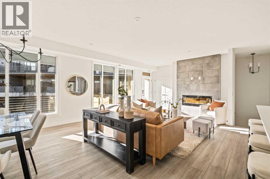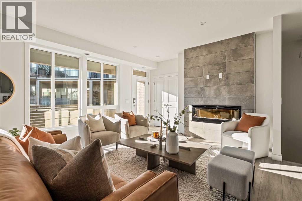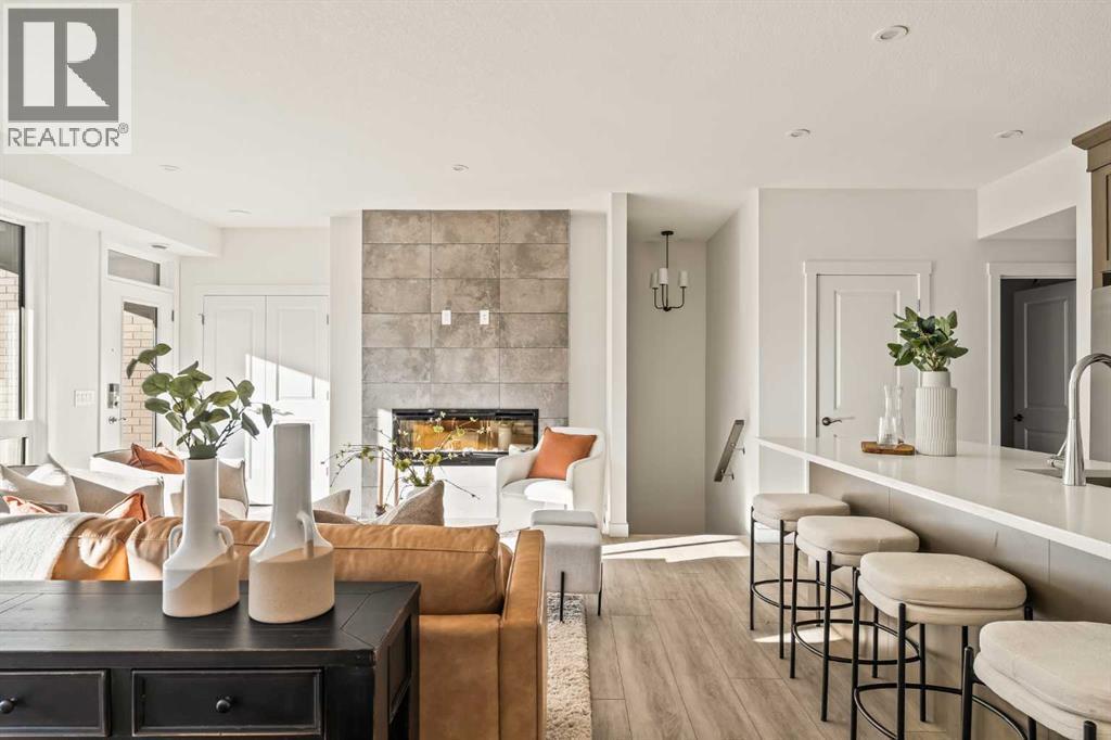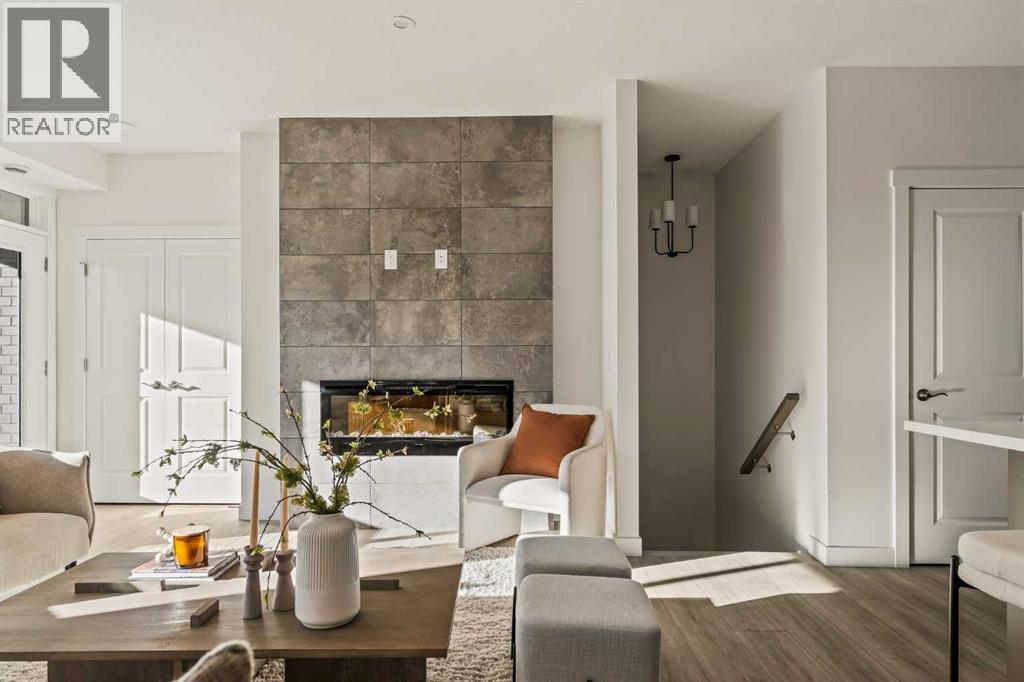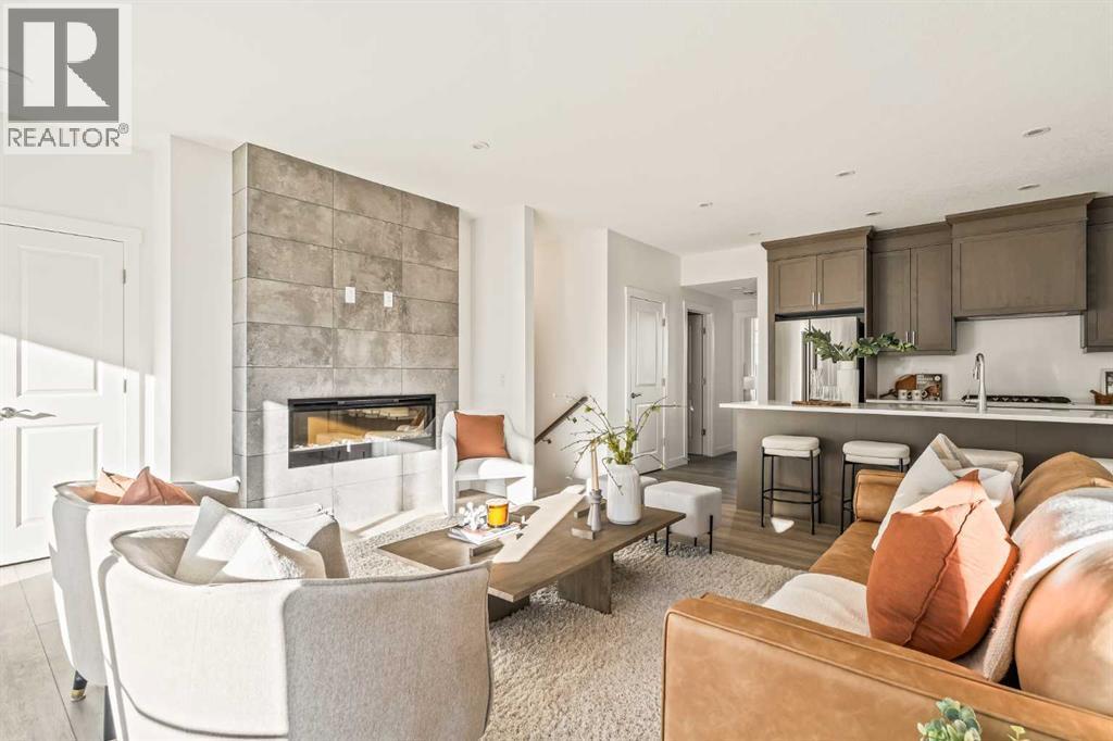 Welcome to the Regent at Crown Park, a beautifully crafted bungalow-style townhome offering true single-level living without compromise! This unique design combines the benefits of a bungalow lifestyle without compromising on storage or garage space, all while moving into a brand new beautiful home with full warranty! Thoughtfully designed with down-sizers in mind, this maintenance-free residence is perfect for those who travel or simply prefer a lock-and-leave lifestyle free from exterior upkeep, landscaping, or snow removal. This brand-new 3-bedroom, 2-bathroom home offers nearly 1,300 sq.ft. of well-planned living space on one level, plus a lower level featuring extensive storage and access to the oversized double garage. At the heart of the home, a stunning open-concept living area was created for effortless entertaining. The central kitchen seamlessly connects the living and dining spaces while a full wall of south-west facing windows floods the interior with natural light all year long. Timeless finishes include warm-tone natural wood shaker maple cabinetry, light quartz countertops, and a premium built-in appliance package featuring a gas cooktop, built-in oven, and chimney hood fan - ensuring the chef is always part of the conversation. A striking floor-to-ceiling tile fireplace anchors the great room, offering a warm focal point and comfortable seating for gatherings. The spacious dining area easily accommodates a full table and buffet, providing exceptional furnishing flexibility. Privately positioned at the rear of the home, the primary retreat features a generous walk-in closet and spa-inspired ensuite with dual vanities and a tiled walk-in shower with 10mm glass. A centrally located laundry room with upper cabinetry and folding counter enhances everyday convenience while naturally separating the primary suite from the secondary bedrooms. Two additional bedrooms and a full bathroom provide versatility for guests, a home office, media room, or creative sp ace - while maintaining excellent resale appeal. The lower level offers a large storage room and an oversized utility room (approx. 17' x 7') ideal for hobbies or seasonal storage. A double closet and oversized double attached garage completes the interior features on the lower level. Step outside to your private covered southwest-facing patio spanning over 26 feet that overlooks the park and includes a gas line, hose bib, and A/C rough-in - the perfect setting for relaxed outdoor living and future upgrades in mind. Bungalow-style townhomes with double attached garages are exceptionally rare. Enjoy added peace of mind with comprehensive builder warranty coverage plus Alberta New Home Warranty. Located minutes from downtown and surrounded by established amenities, Crown Park offers the confidence of a mature community paired with the comfort of a brand-new home. This is one of the very last brand new opportunities remaining - a truly rare opportunity you won’t want to miss! (id:6769
