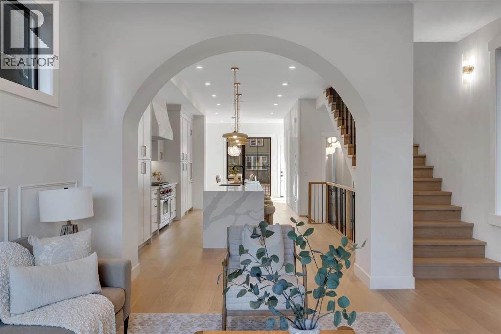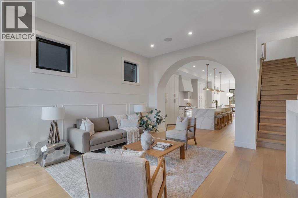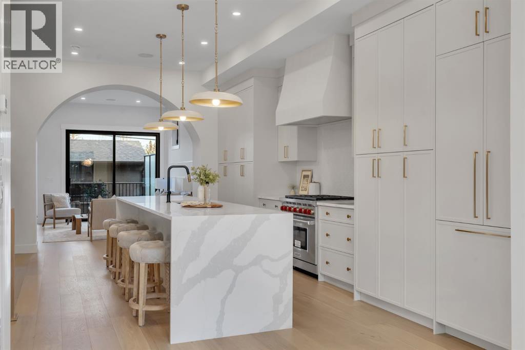 The builder is offering an extended warranty with the standard first year coverage extended to two full years, providing enhanced peace of mind and added long term protection for the new homeowner. This exceptional brick residence by Jerry Homes is ideally situated near Marda Loop in one of Calgary’s most desirable inner city neighbourhoods and offers a refined blend of timeless architecture and modern luxury. The thoughtfully designed main level features soaring 10 foot ceilings, expansive windows that flood the space with natural light, an elegant dining area with detailed wall treatments, and a stunning chef inspired kitchen anchored by an oversized island, quartz countertops, custom cabinetry, premium built in Wolf and Dacor appliances, a concealed walk in pantry, and sophisticated designer finishes throughout. A beautifully defined great room centers around a custom multi tier gas fireplace creating an inviting yet elevated atmosphere, while a functional mudroom with ample storage adds everyday convenience. Upstairs, 9 foot ceilings frame a luxurious primary retreat complete with dual walk in closets and a spa like five piece ensuite finished in full height designer tile and offering in floor heating, a steam shower rough in, and a deep soaker tub. Two additional bedrooms, a well appointed bathroom, and a spacious dedicated laundry room complete the upper level. The fully developed basement expands the living space with a large recreation room, wet bar, fourth bedroom, and a full bathroom along with in floor heating rough in for added comfort. Additional highlights include rough ins for air conditioning, built in ceiling speakers, a security system, and exterior cameras. Surrounded by top rated schools, parks, and the vibrant shops and restaurants of Marda Loop, this home delivers elevated inner city living with exceptional craftsmanship and everyday practicality. (id:6769