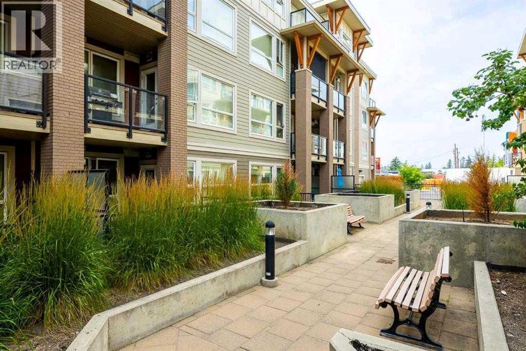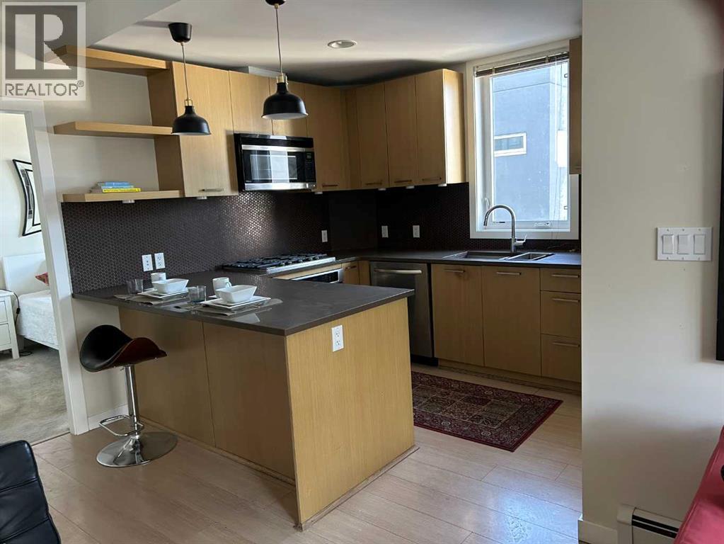 Step into this 2 bedroom and 2-bathroom corner-unit home and you will be greeting by a spacious kitchen with classic penny-round backsplash and quartz countertops, maple cupboards, stainless appliances including a built-in oven, and a countertop gas stove . A huge quartz peninsula has enough counter space to sit 3 people. Nine feet ceilings and large windows create an extra roomy feel. Windows blanket both the North and East sides of this unit The North – East patio has a gas hookup to take care of your ba4bequing needs. The master bedroom has a luxurious ensuite with a 3’ x 8’ glass shower and a walk-in closet. The second bedroom is more than generous with ample storage and a 2’nd 4-piece bathroom is just off the entrance to the unit. Apartment style in-suite laundry facilities enable you to take care of all your laundry needs. This unit also has a storage locker and a tandem parking stall for 2 vehicles.This desirable condo complex features a pet-wash, a car wash, 2 gyms, a bike storage room, visitor parking and a beautiful courtyard. The condo has very reasonable condo fees. Conveniently located near restaurants and shopping and minutes to downtown. This condo has a perfect balance for size and lifestyle for the inner-city dweller. This is a pet friendly building.NOTE: Vacant – easy to show. CREB LOBBYBOX at the front entrance of building 707 provides access to the building. Condo entrance lockbox on the unit door. (id:6769
