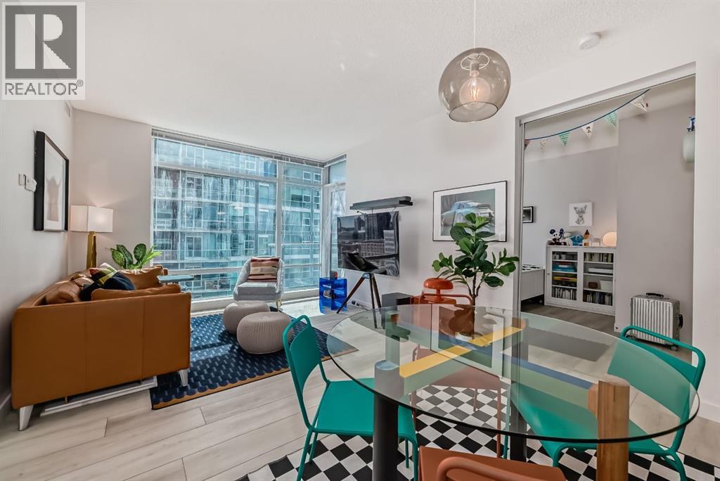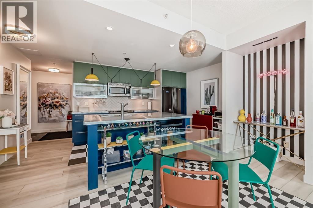 This revamped Union Square condo captures the essence of modern urban sophistication. Lofty ceilings and expansive windows flood the space with natural light while framing breathtaking views of Downtown Calgary. The kitchen is a contemporary masterpiece, featuring an industrial-chic design with a black, white, and stainless-steel color palette. The upgraded light grey vinyl plank floors and statement lighting, including funky track lights and a bold chandelier, add a trendy edge to the space. The kitchen boasts a sleek stainless-steel-look countertop, offering a stylish modern update over its original quartz finish. A generous island invites socializing and casual dining, seamlessly flowing into the open-concept living area. Here, a built-in nook provides a versatile space for a home office or extra storage. Step out onto the private balcony for sweeping city views, from the iconic Calgary Tower to the bustling Stampede grounds. The primary suite is a retreat, complete with a walk-in closet and a spa-like ensuite featuring a vessel sink and glass-enclosed shower. The second bedroom is equally spacious, with jack-and-jill access to the main bathroom, ensuring privacy and convenience for guests or roommates. In-suite laundry adds to the effortless lifestyle this home provides. Located in the heart of the Beltline, this condo offers secured underground parking and unbeatable walkability. With a walkscore of 93, you’re just steps away from renowned bars, restaurants like Ten Foot Henry, Midtown, and Proof, as well as parks, grocery stores, fitness centers, and the C-train. The river pathways and Stampede grounds are also within easy reach, making this an ideal home for modern city dwellers. Schedule your viewing today to experience contemporary Beltline living at its finest! (id:6769