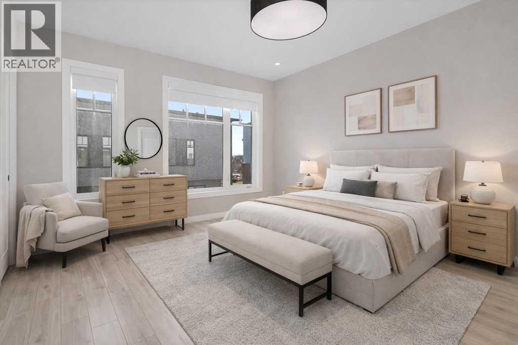 OPEN HOUSE SUNDAY, March 15, 1:30-2:30pm Welcome to District Townhomes in West Springs, where modern luxury meets everyday convenience in one of Calgary’s most desirable Westside communities. Built by Truman Homes, this stylish 3-storey, 3-bedroom, 2.5-bathroom townhome is thoughtfully designed for today’s lifestyle—clean lines, smart function, premium LVP flooring, roller-shade window coverings throughout and elevated finishes throughout.The entry level offers a flexible den/home office, plus a utility area, extra storage, and direct access to the attached double garage—perfect for commuting, working from home, or keeping life organized.Upstairs, the bright and airy main living level impresses with 9-foot ceilings, wide-plank luxury vinyl flooring, and an open-concept layout made for entertaining. The chef-inspired kitchen is the centerpiece, featuring full-height cabinetry with soft-close doors, quartz countertops, elegant gold accents, a gas range, built-in refrigerator, built-in microwave, and a massive quartz island with generous seating for casual meals or hosting friends. Step outside to your large private deck—ideal for morning coffee, summer BBQs, or unwinding at the end of the day.The upper level features three well-planned bedrooms, including a standout primary retreat with a walk-in closet and a private 4-piece ensuite with dual vanities. You’ll also love the convenience of upper-floor laundry right where you need it.Perfectly located just minutes to West 85th, Radio-Park, Aspen Landing, top-rated schools, playgrounds, boutique fitness, grocery stores, cafés, and some of Calgary’s best dining—plus quick access to Stoney Trail and Bow Trail for an easy downtown commute or a fast escape to the mountains.A move-in ready West Springs townhome with high-end finishes, a double garage, and a prime location—this is the one you’ve been waiting for. **Some images have been virtually/digitally staged to illustrate possible furnishings and layout. (id:6769