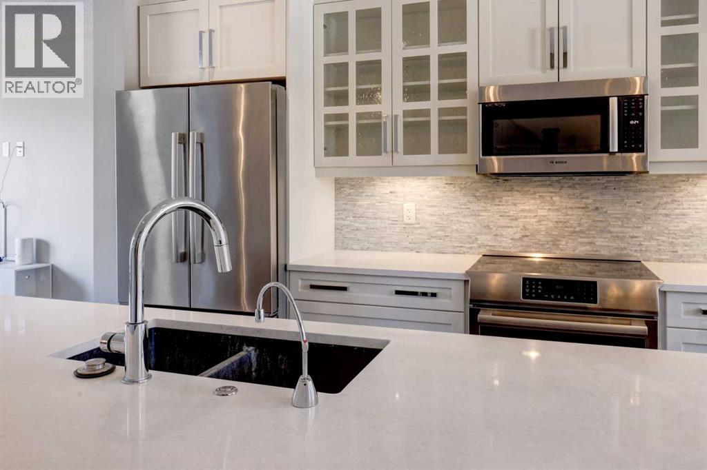 A rare find—townhome living with NO CONDO FEES! This beautifully upgraded home features 9-foot ceilings on the main floor, rich hardwood flooring, & quartz countertops on both the main & upper levels. The open-concept main floor offers spacious living & dining areas framed by elegant windows, while the upgraded kitchen is a true standout. Highlights include high-end Bosch stainless steel appliances, a large centre island with white quartz countertops, under-cabinet lighting, soft-close drawers & doors, & full-height cabinetry for a sleek, modern finish. A rear mud room keeps the family boots & coats organized while the beautiful living, dining & kitchen spaces are perfect for entertaining & family living. Upstairs, hardwood flooring continues throughout, leading to two generously sized bedrooms, each with large closets & custom built-in organizers. The ensuite bathroom is finished with quartz countertops & upgraded counter-to-ceiling mirrors, while the second full bathroom features quartz counters & a tub/shower combination. A conveniently located upper-level laundry room completes this floor. The fully developed basement adds exceptional versatility, offering a flex space ideal for a bedroom, gym, or home theatre, along with an additional full bathroom & abundant storage. Outside, enjoy your private, low-maintenance backyard with stone patio, plus a double detached garage. Additional upgrades include enhanced faucets, lighting, & interior doors, 2.5-inch plantation shutters throughout, air conditioning, new washer & dryer (2025), new hail-resistant shingles, eavestroughs, & downspouts (2025). Ideally located steps from pathways, playgrounds, grocery stores, restaurants, coffee shops, banks, & more, this exceptional home truly checks every box. A must-see! (id:6769
