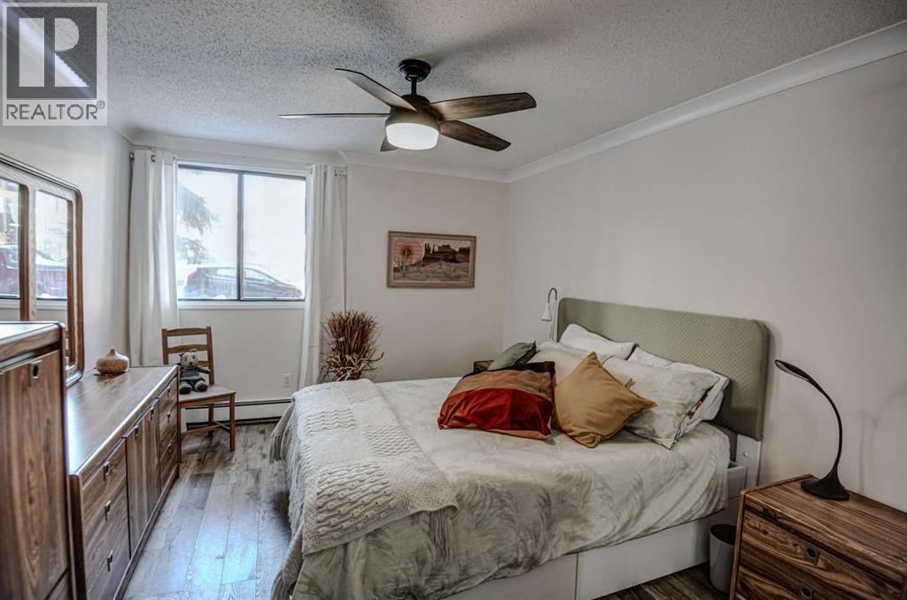 Quiet, 40+ age restricted living can be yours in Chinook Manor, a well-managed and maintained five storey concrete building, with elevator, that is only a couple of blocks from Chinook Center. The spacious two-bedroom unit offers 993 square feet of living space and literally needs no work. Just move in and enjoy. This home is freshly painted throughout. along with all brand-new vinyl plank flooring . Large open living room dining room combination with crown moulding overlooking your exclusive use patio. Second bedroom can be used as an office. The Murphy bed is included.The full bath has a newer vanity. In-unit laundry and storage room.There is also a separate assigned storage room locker . Amenities Include a social room, billiard room, fitness room, laundry room and hobby workshop room. The available underground parking is an option, subject to availability, over and above the building’s included surface parking and abundant on-street parking. There is a strict no-pet policy here and respectable condo fees of $604 per month. Enjoy the quiet lifestyle.Close to transportation and all types of shopping and restaurants. (id:6769