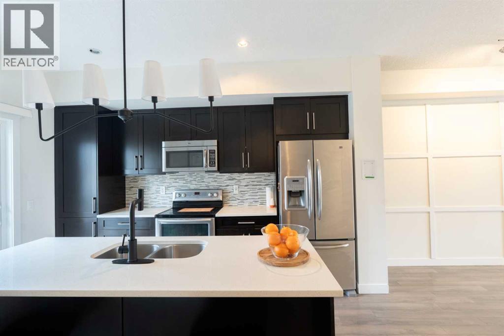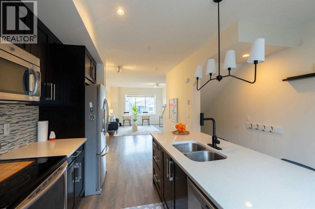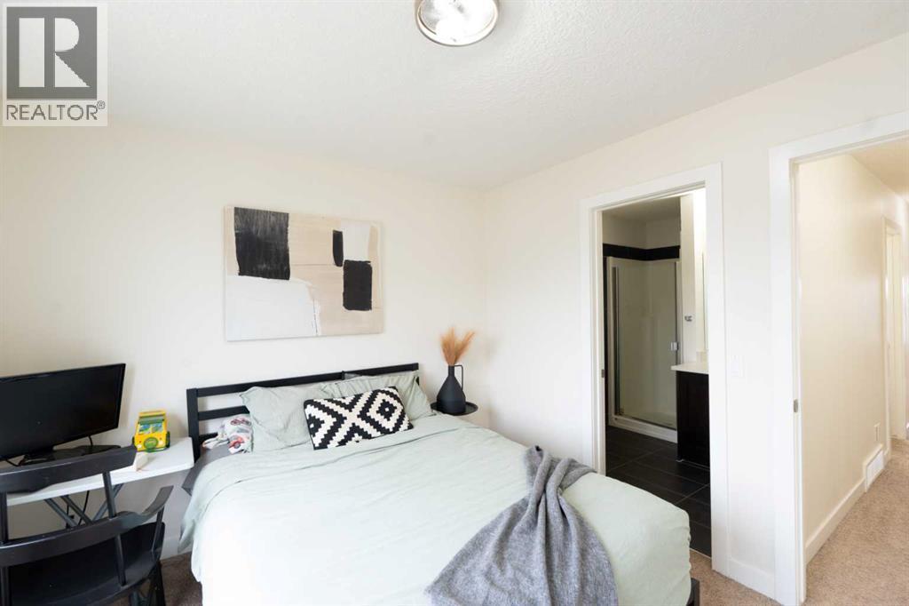 Bright, Stylish & Functional – The Perfect Family LayoutFrom the moment you enter, this home offers thoughtful design and everyday practicality. The ground-level entry near the garage opens into a dedicated office workspace complete with built-in desk and shelving — ideal for working from home or managing busy family life. The foyer includes a spacious closet, convenient 2-piece bathroom, and direct access to the garage, where the furnace and mechanical room are neatly tucked away.Upstairs, carpeted stairs lead to a stunning main living area filled with natural light. Expansive, nearly full-width windows flood the space, highlighting the beautiful accent wall that adds warmth and character to both the living and dining areas. The open-concept design creates an inviting atmosphere perfect for entertaining or relaxing.The kitchen is both elegant and functional, featuring rich dark wood cabinetry that contrasts beautifully with crisp white quartz countertops and a central island. Stainless steel appliances complete the modern look, while sliding patio doors open onto a spacious balcony — perfect for morning coffee, evening BBQs, or gathering with family and friends.The upper level offers three generously sized bedrooms, including a comfortable primary retreat with its own 3-piece ensuite and double closets for ample storage. A convenient upper-floor laundry room with stackable washer and dryer makes daily living easier and more efficient.Outside, the fenced front yard feels like a private oasis. Low-maintenance landscaping, mature trees, and lush greenery provide exceptional privacy and a peaceful setting to unwind.Location adds even more value — with two schools nearby (including a French immersion option and an elementary school), a playground just steps away, and only 8 minutes to Walmart and the main shopping market for all your daily essentials.This home combines style, smart layout, unbeatable convenience, and low-maintenance living — a fantastic op portunity for families, professionals, or first-time buyers alike.Book your private showing today. (id:6769