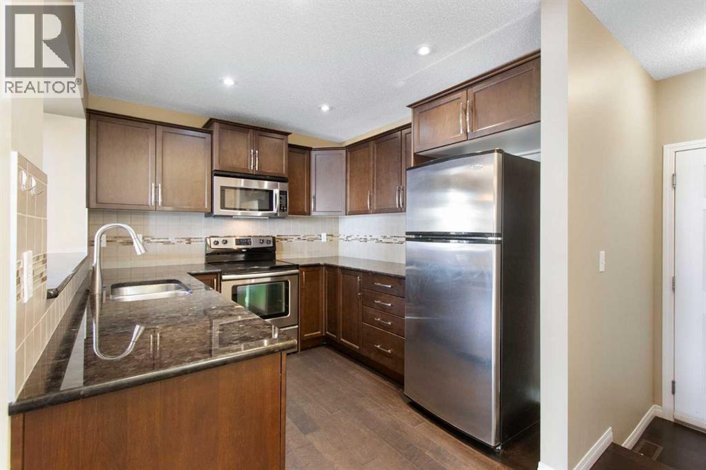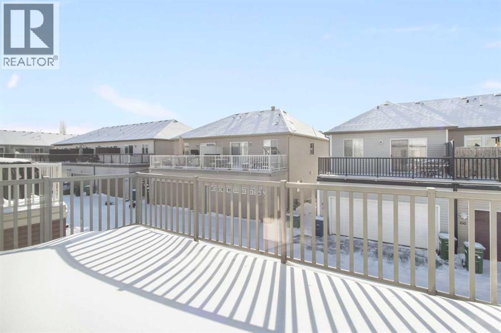 Welcome to this stylish and affordable end-unit two-storey townhome in desirable Windsong, offering unbeatable value with no condo fees, a double attached garage, and a massive south-facing rooftop patio. Located on a quiet, family-friendly street with abundant parking, this home features a front yard, side green space, attractive landscaping, and a spacious covered front porch. Inside, a bright entryway leads to an open-concept main floor with a generous living room, dining area, and well-designed U-shaped kitchen complete with stainless steel appliances, electric stove, built in dishwasher, pantry, raised eating bar, and ample cabinetry and counter space. A mudroom off the kitchen provides convenient access to the garage and main floor half bath. Upstairs offers a versatile bonus/tech space with direct access to the sunny Duradek rooftop patio, along with three well-sized bedrooms including a primary suite with walk-in closet and 4-piece ensuite, plus an additional full bathroom. The unfinished basement includes laundry, bathroom rough-in, and room for future development. Perfect for first-time buyers, downsizers, or anyone seeking a low-maintenance lifestyle, this move-in ready home is close to schools, parks, shopping, dining, medical services, and scenic pathways, delivering exceptional comfort, functionality, and value in a vibrant community. (id:6769