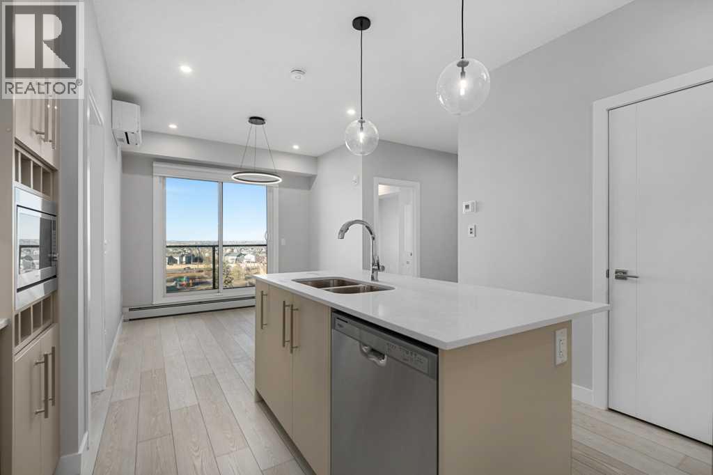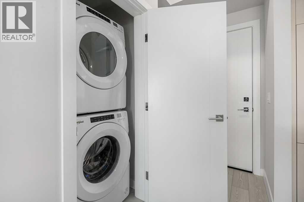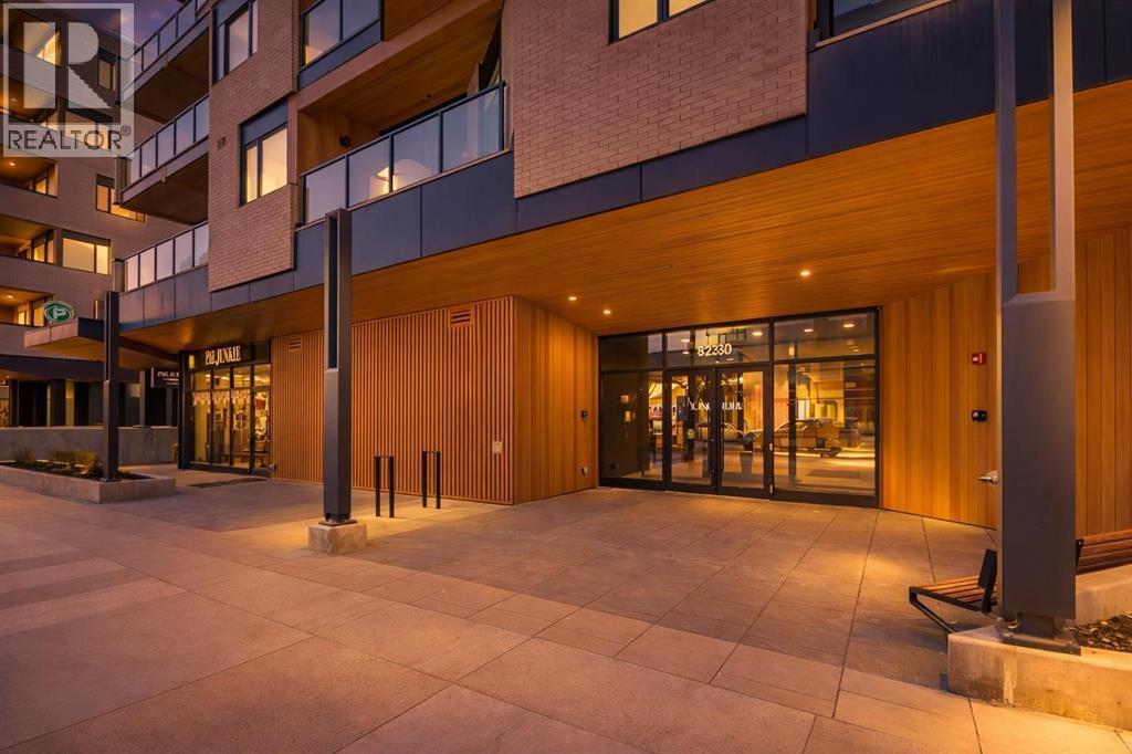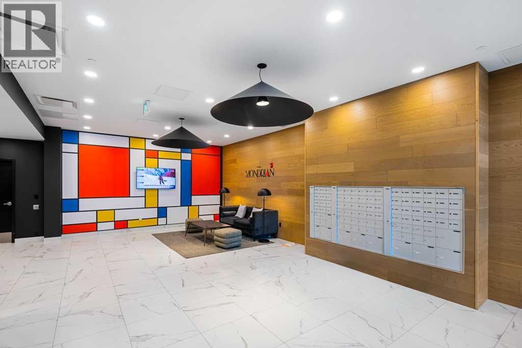 Contemporary living awaits at The Mondrian. This stylish 2 bedroom, 2 bathroom residence is beautifully curated by Truman’s award-winning design team and delivers a true “wow” factor with 9-foot ceilings, air conditioning, roller-shade window coverings, premium LVP flooring with acoustic underlay, and custom energy-efficient LED lighting throughout.The contemporary kitchen impresses with high-end, energy-saving stainless steel appliances, floor-to-ceiling ergonomic cabinetry, polished quartz countertops, and deep drawers designed for everyday function and clean modern style.Retreat to the expansive primary suite featuring a spacious walk-through closet leading to a luxe spa-inspired ensuite with a modern square-edge countertop, designer vanity, and environmentally conscious fixtures.The open-concept living area flows seamlessly to your private balcony, perfect for morning coffee or evening downtime. Enjoy the convenience of in-suite laundry, plus titled underground parking and a secure storage locker.Top it off with access to the breathtaking rooftop lounge with incredible views, all set in a vibrant community surrounded by cafés, restaurants, and boutique shops—and just a short drive to downtown or the mountains. **Some images have been virtually/digitally staged to illustrate possible furnishings and layout. (id:6769