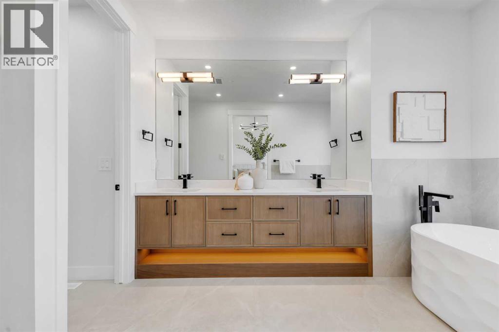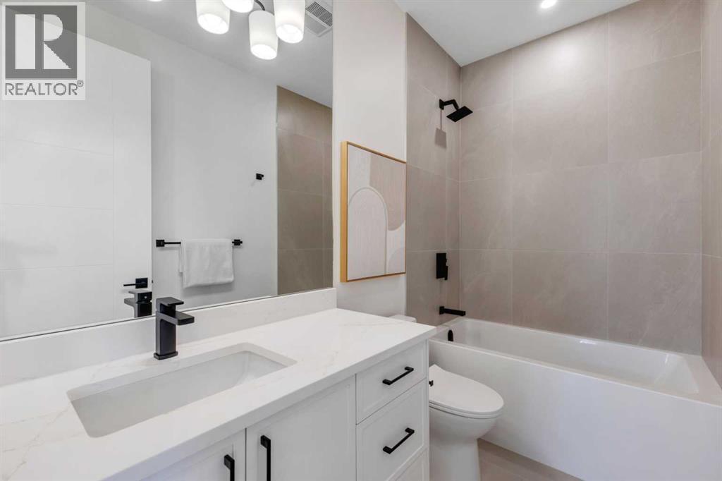 This Rosscarrock semi-detached home blends modern design, practical living spaces, and a prime inner-city location close to schools, green spaces, and major routes. From the moment you step inside, the space feels calm, warm, and intentional, with natural light flowing from front to back and finishes that strike the perfect balance between modern and timeless.The main floor welcomes you with a proper front foyer and a dining space that works just as well for hosting as it does for everyday meals. The kitchen sits at the heart of the home & is designed to impress without feeling overdone. Full-height cabinetry, a large island with seating, and a clean, streamlined cooktop wall create a space that’s both beautiful and highly functional. A tall pantry and a built-in coffee bar area add storage and convenience, making entertaining and mornings feel effortless.The living room is tucked just far enough from the kitchen to feel cozy while staying connected. A GAS FIREPLACE with BUILT-IN CABINETRY anchors the space & adds warmth, while large windows bring in soft, natural light throughout the day. Toward the back of the home, a well-designed mudroom with bench seating and storage keeps daily routines organized, with a discreet powder room nearby. A POCKET OFFICE off the main floor offers a quiet spot for work or study without sacrificing valuable living space.Upstairs, the layout continues to impress with a thoughtful mix of private and shared areas. The bonus room creates a flexible second living space that works for families, movie nights, or a kids’ zone. The primary bedroom feels like a true retreat, with VAULTED CEILINGS and room for a full furniture layout. A generous WALK-IN CLOSET keeps everything organized, while the ensuite delivers a spa-inspired feel with a DOUBLE VANITY, SOAKER TUB, and OVERSIZED SHOWER. Two additional bedrooms, a full bathroom, and an upper laundry room round out the level, keeping everything you need right where you want it.The lower level offers TWO LAYOUT OPTIONS to choose from: a legal 2-bed suite OR a rec room & gym configuration. Choose the option that suits your family's lifestyle - each complete with 2 bedrooms (or home gym or office space), a modern 4-pc bath, and tons of storage. The lower suite option would include custom kitchen and separate laundry for convenience.Set in the established community of Rosscarrock, this home is surrounded by everyday conveniences and excellent west-side access. Walk to ROSSCARROCK SCHOOL, ST. MICHAEL SCHOOL, and nearby playgrounds and green spaces, or enjoy quick access to the Bow River pathway system. The WESTBROOK LRT STATION is just minutes away, making commuting downtown simple. Daily essentials, fitness studios, and local shops line nearby 17TH AVE SW, while popular destinations like SIGNAL HILL CENTRE/WESTHILLS are a short drive away for shopping, dining, and entertainment. *photos from previous project by same builder - finishes will be similar & can be customized.* (id:6769