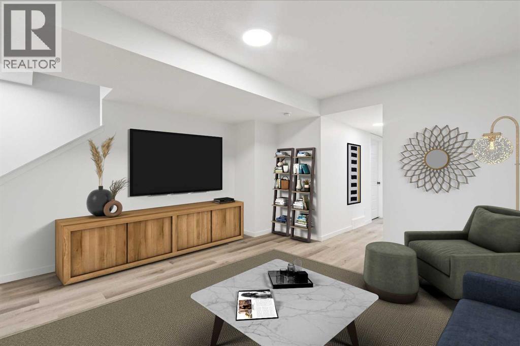 Boasting over 2130Sq Ft, with 3+1 bedrooms of fully developed living space, this gorgeous detached home offers stunning designer style comfortable modern living. Natural light floods the home with the ideal South facing exposure, where the foyer blends into the open living, dining and kitchen area. Tastefully finished subtle designer tones complement the earthy, timeless aesthetic of this home. The great room features luxury vinyl plank flooring throughout with a focal 50" electric fireplace with sleek custom oak mantle giving the living room flexible layout options. The kitchen is a chef's dream, featuring a spacious pantry, an amazing over sized island with upgraded quartz counters and loaded with custom designed drawers. Enjoy the gas range and counter depth refrigerator offering easy everyday function and convenience. Continuing on the main level, you'll find a convenient powder room, perfect for guests and daily use and a spacious mud room with bench and hooks for easy daily function. Upstairs, the primary bedroom is flooded with natural light and offers a spacious walk-in closet and ensuite with oversized shower. The two extra bedrooms are perfect for family members or guests, and they share a beautifully appointed central 4pc family bathroom. Enjoy the convenience of an upstairs laundry room with a full length hanging rack and additional shelving. The basement is thoughtfully designed by the builder with a generous family room, perfect for entertainment and relaxation, a 4-piece bathroom for added convenience and a fourth bedroom. The lighting throughout this home has been thoughtfully upgraded to recessed LED's which create an ambiance that is both warm and inviting. The exterior of this home is equally impressive, with a fully landscaped & fenced yard that adds to its curb appeal and creates a welcoming outdoor space for entertainment. A paved back alley-way provides access to space for secure parking or future dbl garage. This newer Morrison Home in Belmon t offers a fresh and comfortable living experience, blending contemporary design, functional elegance, and a sense of community that makes it a true gem. Across from a possible future school area and easy access to excellent commuter routes and shopping amenities. Presented in pristine move-in ready condition and available for quick possession! (id:6769