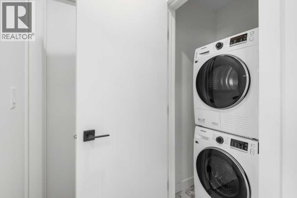 Experience sophisticated urban living at West Plaza. Brand new and never occupied, this beautifully appointed 2 bedroom, 2 bathroom condo showcases interiors curated by Truman’s award-winning design team.What truly sets this home apart is the huge balcony that lives like a private patio—an incredible outdoor extension of your living space, perfect for entertaining, summer BBQs, or creating your own outdoor lounge.Inside, comfort meets style with air conditioning, a smart Wi-Fi thermostat, and roller-shade window coverings throughout. The open-concept layout features 9-foot ceilings, abundant natural light, and custom contemporary LED fixtures that keep the space bright and inviting. You’ll also appreciate the dedicated office/flex area, ideal for working from home, a reading nook, or extra storage and organization.The kitchen is a showpiece, offering floor-to-ceiling ergonomic cabinetry, polished quartz countertops, deep drawers, a full-height contemporary backsplash, and a gas range—built for both daily living and hosting.The primary suite is a true retreat with a spa-inspired ensuite featuring quartz countertops, a sleek glass-enclosed shower, and environmentally conscious fixtures for a clean, elevated finish.The main 4-piece bathroom is finished with polished quartz countertops, a modern square-edge tub, and sleek contemporary fixtures for a clean, spa-inspired feel.Additional highlights include in-suite laundry, titled underground parking, and a dedicated storage locker. Residents also enjoy premium amenities including a fully equipped fitness centre, an inviting owners’ lounge, and a 5-star hotel-style lobby with designer-inspired common spaces.All of this, just steps to boutique shopping, some of Calgary’s best dining and cafés, and the greenery of Radio Park. ** Some images have been virtually/digitally staged to illustrate possible furnishings and layout. (id:6769
