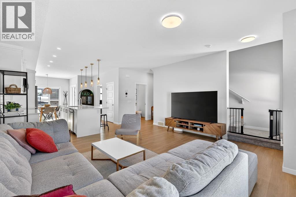 Welcome to Cranston, where light, space, and modern design converge in a 2022-built townhome that feels as elevated as it is effortless. Offering 1,876 square feet of above-grade living space, this impeccable residence invites you to step into something more refined - where clean architectural lines, thoughtful upgrades, and serene pond views quietly signal that you’ve found the one. From the moment you enter, a versatile flex space on the first level unfolds with possibility, ready to become your home gym, studio, executive office, or private retreat. Upstairs, 9-foot ceilings and an open-concept layout create a sense of expansiveness, while natural light beams through both east and west-facing windows, illuminating the luxury vinyl plank flooring. The kitchen is both refined and functional, featuring stainless steel appliances, full-height cabinetry, a large pantry, and a breakfast bar island that naturally becomes the heart of the home. An enclosed office overlooking the glass-railed balcony offers an inspiring workspace with serene pond views, while the balcony’s gas line makes outdoor entertaining effortless. A roomy half bath completes this thoughtfully designed level.The third floor delivers privacy and comfort, with a spacious laundry room offering additional storage and a west-facing primary bedroom that captures warm afternoon light. The deep walk-in closet and elegant ensuite - complete with dual sinks, quartz countertops, and an oversized shower - create a daily ritual of calm and convenience. Two additional generously sized bedrooms share a well-appointed four-piece bathroom, providing flexibility for family or guests. Beyond aesthetics, this 2022-built Cranston townhome is equipped for the future with a brand new air conditioner, hot water on demand, a heat recovery ventilator, fibre optic high-speed internet, and an oversized insulated double attached garage with a double driveway comfortably fitting four vehicles. The garage is already equipped wit h an electrical panel for a future EV charger, blending practicality with forward-thinking design. Visitor parking within the complex and additional street parking ensure convenience for guests, while pet-friendly policies with board approval make it easy to bring every member of the family home. Overlooking a scenic wet pond and located near the river pathways of Fish Creek Park, shopping, schools, and everyday amenities, this home offers easy access to the ring road and Deerfoot Trail, connecting you seamlessly to the rest of Calgary. (id:6769