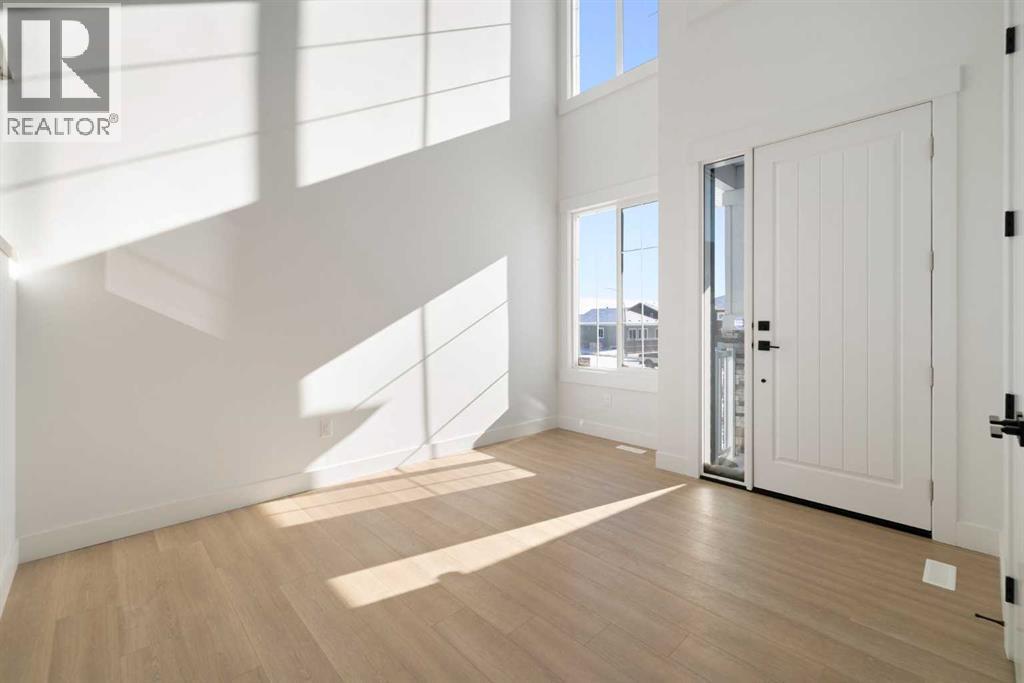 ELIGIBLE FOR FIRST HOME BUYERS GST REBATE. WALKOUT | OVERSIZED TRIPLE GARAGE | QUIET CUL-DE-SAC | PIE LOT ON PATHWAY | LAKE VIEWS | ALMOST 2,700 SQ FT Wake up to peaceful living and views. Step directly onto pathways from your backyard. Tucked away on a quiet cul-de-sac in prestigious Strathmore Lakes Estates, this exceptional walkout home sits on a large pie-shaped lot backing the pathway system with breathtaking lake views. Offering close to 2700 sq ft of refined living space, this modern contemporary residence blends upscale finishes with thoughtful functionality — all anchored by an oversized triple garage, perfect for vehicles, storage, or toys. A dramatic two-storey foyer, open to above, floods the home with natural light and creates an immediate sense of space. The open-concept main floor is designed for both elevated entertaining and everyday comfort, featuring a chef-inspired kitchen with granite countertops, a statement island, walk-through pantry, custom feature walls, gas fireplace and high-end finishes throughout. A standout feature is the full bathroom on the main level, offering flexibility for guests or multi-generational living. The main-floor office can easily convert into an additional bedroom if desired. Upstairs, a bright bonus room provides the perfect family retreat. The primary suite is a true sanctuary, capturing beautiful views and offering a spacious walk-in closet with custom built-ins and a spa-inspired 5-piece ensuite. Two additional generously sized bedrooms — both with walk-in closets — share an impressive 5-piece bathroom, ideal for growing families. The walkout basement remains unfinished — a blank canvas ready for your custom vision. Whether you imagine a home theatre, gym and additional bedrooms the open space makes future development especially compelling. With quick access to over 50 km of scenic pathways in Strathmore, winding through canals and green space, plus the privacy of a quiet cul-de-sac and the bonus of a triple gara ge, this property delivers luxury, location, and lifestyle in one remarkable package. A rare opportunity to secure one of the community’s most desirable lots with room to grow. (id:6769