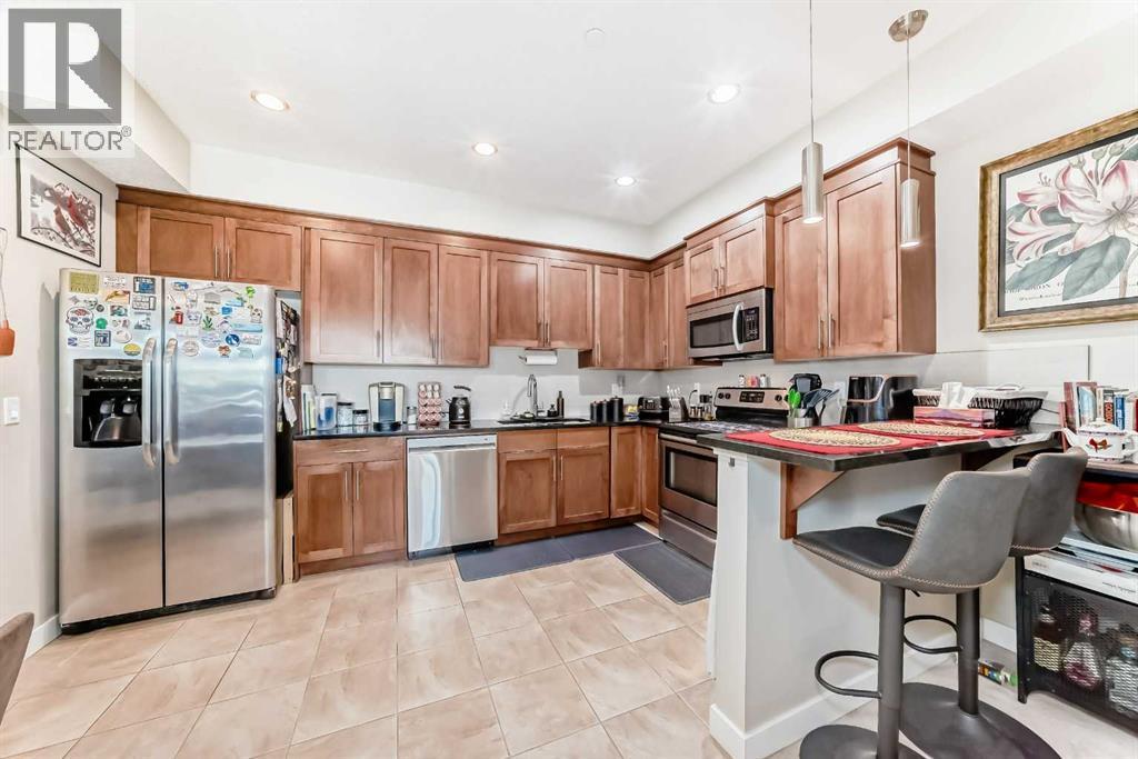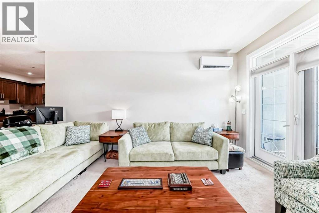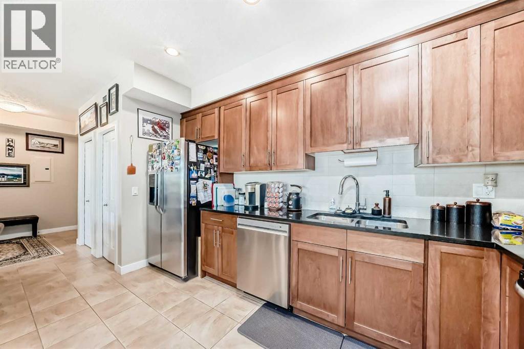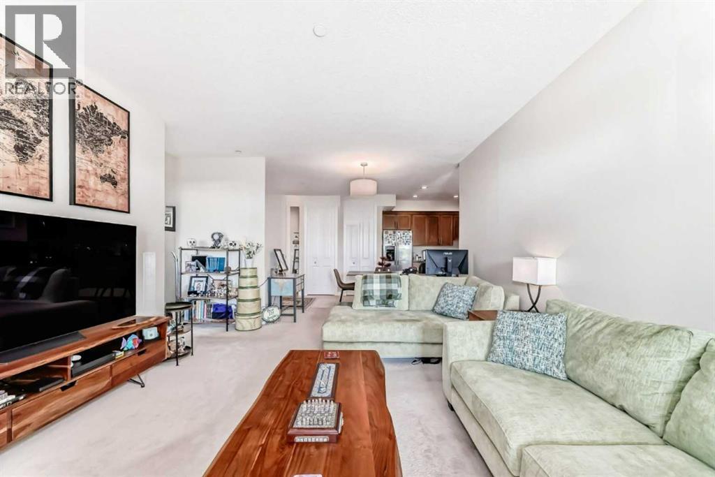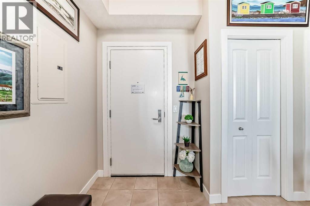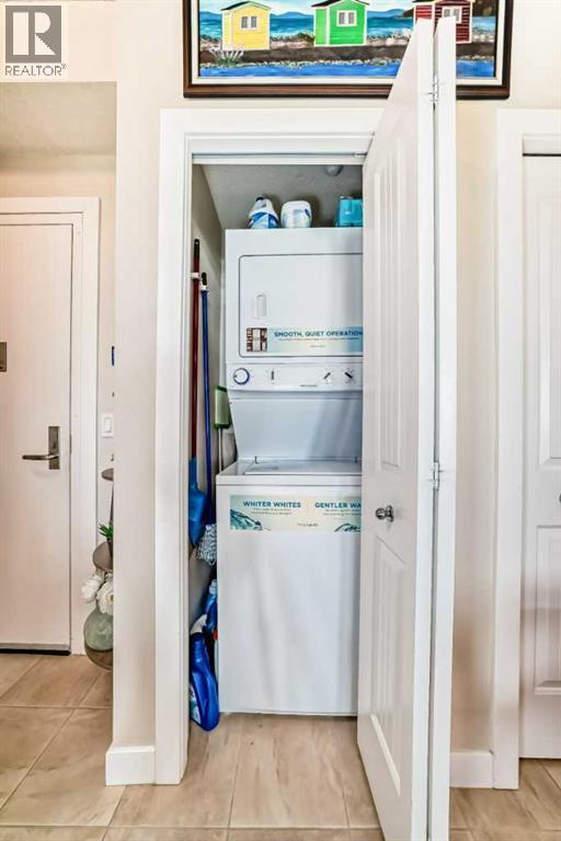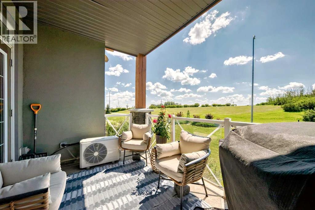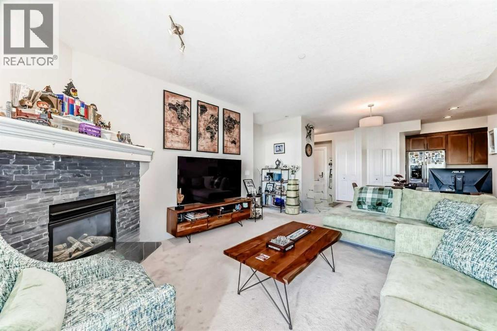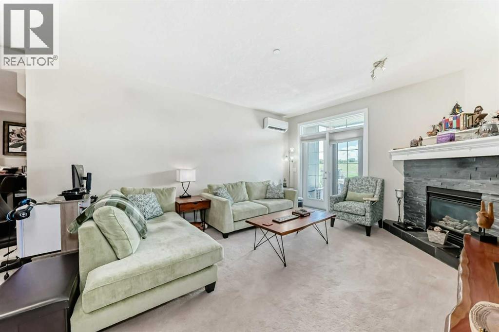 This fantastic unit in the Savana Condos of Strathmore offers a prime location within walking distance to the lake, pond, and all nearby amenities. With over 1,000 square feet of living space, this spacious two-bedroom, two-bathroom condo is an excellent opportunity for both homeowners and investors. The unit includes three titled parking stalls—one tandem heated underground stall (with extra storage in front) and one titled exterior surface stall. Underground stall is 111 and surface stall is 205 Inside, the layout is open and inviting with open concept from the living room to the dining area and kitchen. The kitchen is thoughtfully designed with abundant cabinet space, upgraded stainless steel appliances including a fridge with water and ice, a large L-shaped island with an eating bar, a pantry, and granite countertops. Ceramic tile flooring is featured in the kitchen and bathrooms, while the rest of the unit is finished in carpet. The living room offers a cozy gas corner fireplace and access to a spacious balcony with a lovely view.The master bedroom is impressively large and filled with natural light from multiple windows. It includes a walk-through closet that leads to a luxurious five-piece ensuite with double sinks, a separate shower, and a soaker tub. The second bedroom is also generous in size with plenty of closet space, and there's an additional four-piece bathroom for guests. For added comfort, the unit features in-floor heating, air-conditioning unit on the deck and wall unit in living room, and a washer and dryer are conveniently located in-suite.This well-managed complex is known for its popularity and desirability. Currently, the property is tenanted with a lease in place until June 2026 at $2,000 per month. The tenant is open to extending their stay, making this a strong investment opportunity for those looking to secure a reliable rental income. Please note that while dogs are not permitted in the complex, cats are allowed with board approval . (id:6769