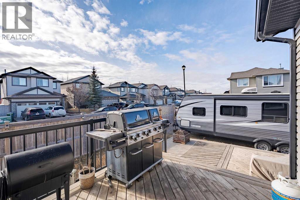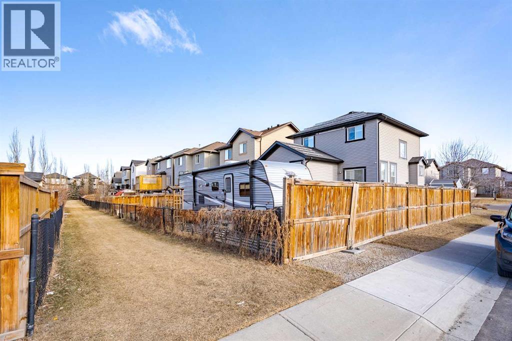 Set on a prominent corner lot in the established community of Prairie Springs, this fully developed two-storey offers the space, layout, and versatility for growing families! With ~2,400 sqft of total living space designed to function as beautifully as it feels, featuring 4 total bedrooms, 3.5 bathrooms and a fully developed basement.The double front attached garage, double-car driveway, and additional RV parking pad in the backyard create rare flexibility for multi-vehicle households, recreational storage, or future utility needs. Corner lots also mean more breathing room, additional street parking, and enhanced curb appeal.Inside, the main floor unfolds in a warm and welcoming open-concept design. Rich hardwood flooring leads into a kitchen that is both practical and polished, featuring granite countertops, ample prep space, and seamless flow into the dining area and quick access onto the back deck. The spacious living room is anchored by a cozy fireplace – an inviting focal point for quiet evenings or lively gatherings. Whether hosting gatherings or managing weekday routines, the layout supports real life family needs.Large windows invite natural light throughout, while the connection to the backyard deck extends your living space outdoors. The deck is ideal for summer entertaining, morning coffee rituals, or simply unwinding after a long day. Garden beds provide an opportunity to cultivate vegetables, herbs, or seasonal colour – adding personality and purpose to the yard. That's not all – right behind the yard is a community walking path leading to a playground, perfect for walking the dog and for kids to explore!Upstairs, three bedrooms create a comfortable retreat for the family. The primary suite offers privacy and convenience with its own ensuite, while the additional bedrooms are thoughtfully sized for children, guests, or home office flexibility. Carpet upstairs adds comfort underfoot, balanced by durable ceramic tile in high-traffic areas.The fu lly developed basement meaningfully expands the home’s functionality. A fourth bedroom, full bathroom, and generous recreation room / movie room creates endless options – whether as a teenager’s retreat, guest quarters, home gym, media lounge, or play space. This lower level ensures the home adapts as your family’s needs evolve.What sets this property apart is its balance: open yet defined spaces, indoor-outdoor flow, storage and parking flexibility, and a location within the established south-Airdrie neighbourhood Prairie Springs that remains popular for its family-oriented atmosphere and accessibility. Quick access onto Highway 2 provides commute to Calgary within minutes. Book your showing today, and see all this home has to offer! Rare corner lot with RV parking! (id:6769