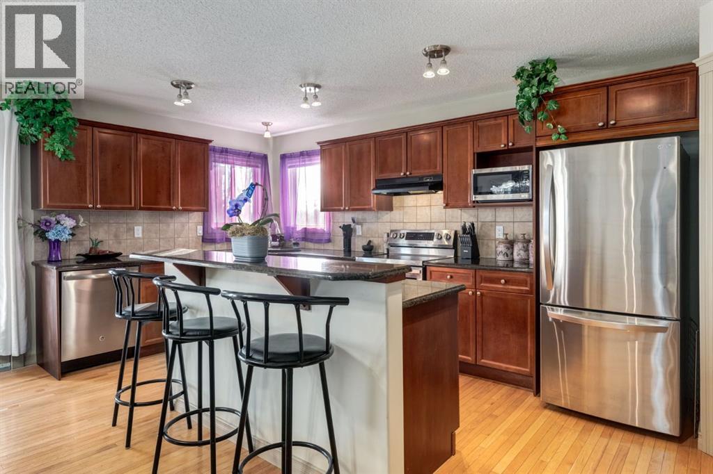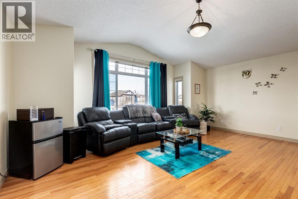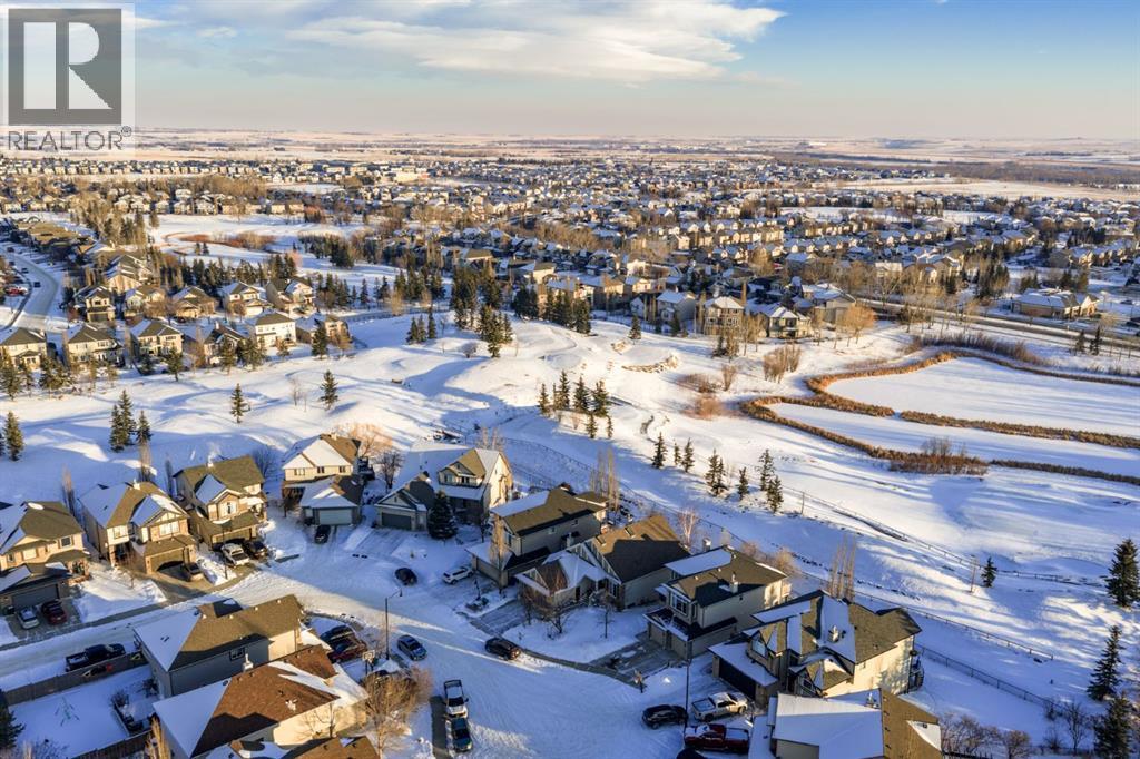 Situated on a peaceful cul-de-sac in coveted Crystal Green this beautiful walkout home is in a perfect location and provides the added privacy and tranquility of backing south onto the golf course with mountain views. This stunning home features endless upgrades including hardwood flooring, central A/C, balconies spanning the length of the house on two levels and is flooded with natural lights through expansive south facing windows. Showcasing stunning curb appeal, and a large front porch, this executive home greets you with a spacious front entryway with room for bench seating. The first thing you notice when you enter this stunning home is a cheerful and bright feel as sun shines through your huge south facing windows that showcase nature. Main floor highlights include a sprawling kitchen with granite countertops, kitchen island with bar seating, and a massive walkthrough pantry with direct access from the oversized garage (with room for trucks, 220V electrical and a heater). The spacious living room boasts a cozy fireplace with tile surround and timeless mantle to creates the perfect place to relax and unwind. Step out from the kitchen onto your massive south facing deck with nearly 400sqft of space, aproviding an incredible oasis to relax, eat dinner, or BBQ in endless sunshine. The main floor is completed by a spacious dining area with room to host large gatherings, and a 2-piece bathroom. Upstairs displays a massive bonus room with soaring vaulted ceiling, which makes the perfect place to enjoy family movie nights. Down the hall contains laundry and your private primary suite with room for king-sized furniture, a massive 5-piece ensuite bathroom with dual vanities, a make-up area, large soaker tub, standup shower, and a patio door leading out to your top-level balcony. The second, sprawling bedroom has room for multiple beds, a desk, and boasts a large 3-piece ensuite, and sunny south facing windows with access to the top floor balcony. Downstairs has been recently updated to include brand new luxury vinyl plank flooring throughout, has multiple windows allowing light to stream into your home – making it feel nothing like a basement. The basement features two large, additional bedrooms, a 3-piece bathroom, and tons of storage. The basement level allows direct access to your backyard which contains a large patio space, landscaping, a spacious dog run, and tons of greenery in the summertime. This one-of-a-kind home is in an unparalleled location at the end of a dead-end street, backs south onto the golf course, showcases mountain views, multiple outdoor spaces, and has been lovingly maintained over the years. This home is steps from a greenspace with playground, is walking distance to multiple schools, Okotoks off leash park, shopping, and the amenities of Crystal Shores Resident’s association, which includes lake access, fishing, and skating activities. Additional upgrades include an HRV, A/C (2023), newer hot water tank, and a new furnace (2023). (id:6769