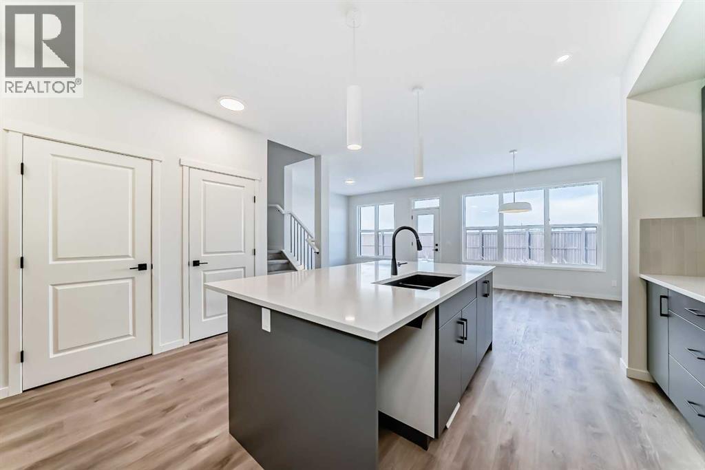 Welcome to The "Luna" a beautifully designed home in the vibrant, garden-to-table community of Rangeview—where modern style, smart function, and everyday comfort come together in a layout that simply lives well. From the moment you step inside, the home feels bright and open thanks to wall-to-wall windows and an airy main floor design that’s ideal for both busy weekdays and easy entertaining. At the front of the home, an open flex room adds incredible versatility, perfect as a home office, reading nook, homework zone, or a kids’ playroom, giving you a dedicated space that can evolve with your lifestyle. The heart of the home is the upgraded kitchen, designed to look sharp and work hard. You’ll love the modern grey flat panel cabinetry raised to the bulkhead, paired with crisp white quartz countertops and sleek black hardware for a clean, contemporary finish. The upgraded kitchen layout offers improved flow and function, while a statement chimney hood fan is framed by a modern vertically laid, stacked subway tile backsplash that adds just the right amount of texture and style. Light wood grain vinyl plank flooring runs throughout the main level, bringing warmth and contrast to the modern palette and tying the space together beautifully. The open-concept design keeps the kitchen connected to the dining area and living room so you can cook, host, and relax without missing a beat—made even better by all the natural light pouring in throughout the day. Upstairs is where this floor plan really shines, offering the kind of space and separation families appreciate. A large central entertainment room/bonus room becomes the natural hub of the upper level, ideal for movie nights, a gaming setup, a play area, or a cozy lounge for teens and guests. It’s the perfect “second living room” that keeps the main floor tidy and gives everyone a place to spread out. The primary suite feels like a true retreat, offering plenty of space for a king sized bed and furniture, along with a gene rous walk in closet and a spa inspired ensuite where you can unwind at the end of the day. Two additional bedrooms are thoughtfully positioned to offer comfort and privacy, each with excellent natural light and enough room for growing kids, guests, or a dedicated second office. A well appointed secondary bathroom completes the upper level, keeping daily routines easy and organized. Downstairs, the home continues to deliver long-term value with a separate entrance and 9’ foundation height, offering exciting flexibility for the future, whether your vision includes additional living space, extended family options, or potential for a future basement suite (subject to approval and permitting by the city/municipality). Outside, the west-facing backyard is a standout feature, perfect for soaking up afternoon sun, enjoying evening BBQs, or creating a patio and outdoor living space you’ll actually use all summer long. Set in Rangeview, a community known for its welcoming vibe! (id:6769
