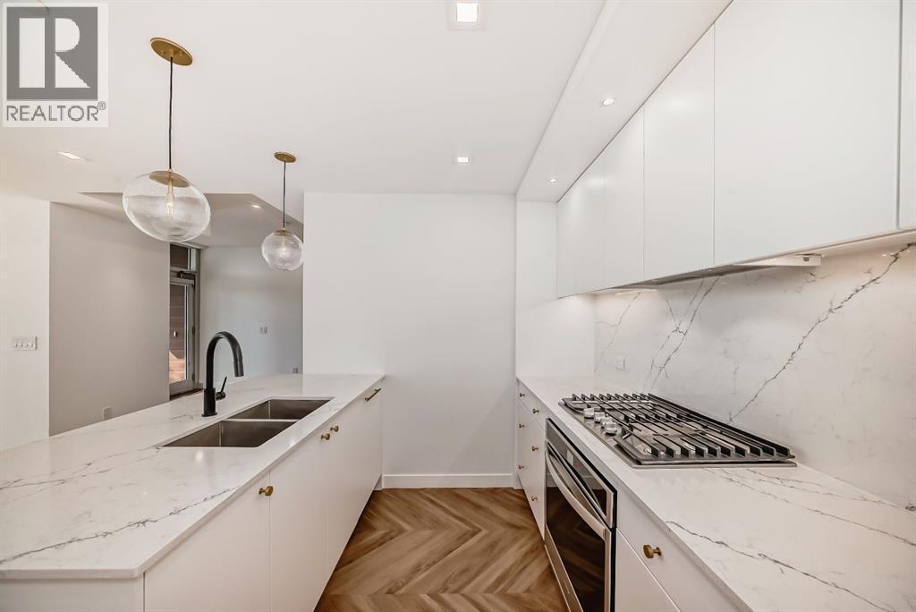 Welcome to Gateway by TRUMAN, set in the vibrant and master-planned community of West District. This concrete-constructed, 2-level brownstone offers an unparalleled blend of modern elegance and convenience, featuring 2 bedrooms, 2.5 bathrooms, a versatile study, and the added bonus of 2 titled underground parking stalls. Step inside and experience the finest craftsmanship with luxurious details at every turn. Enjoy year-round comfort with air conditioning, while Chevron wide-plank luxury flooring graces the home, lending an air of sophistication throughout. Custom penny round mosaic tiles elevate each bathroom, creating spa-like retreats. The ambiance is further enhanced by the painted ceilings, adding a refined touch to every space. The chef-inspired kitchen is truly the heart of the home, designed to impress. With a super matte finish and striking brushed gold hardware, the kitchen boasts a seamless blend of style and function. High-end appliances include a gas cooktop and wall oven, a spacious 36" Fisher & Paykel integrated fridge, and a paneled dishwasher. Soft-close custom cabinetry, under-cabinet lighting, eating bar, and quartz countertops with a matching backsplash complete this elegant and efficient culinary space. The thoughtfully designed floor plan ensures both comfort and practicality, with floor-to-ceiling windows that fill the home with natural light. These large windows are outfitted with window coverings and open to a private patio, while the primary suite features its own balcony—perfect for enjoying serene morning coffees or evening sunsets. Convenience is paramount with a washer and dryer included. Set in an exclusive community, Gateway offers the perfect blend of luxury, location, and lifestyle. Stay tuned for the upcoming photo gallery that will capture the beauty of this residence. (id:6769