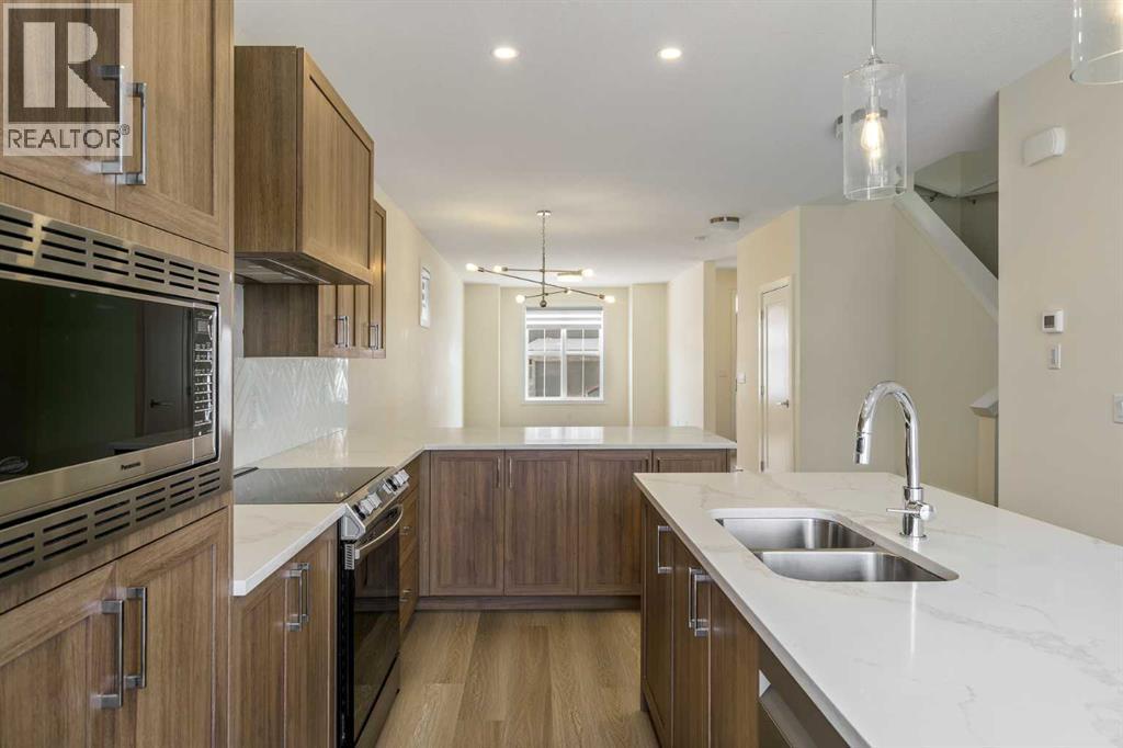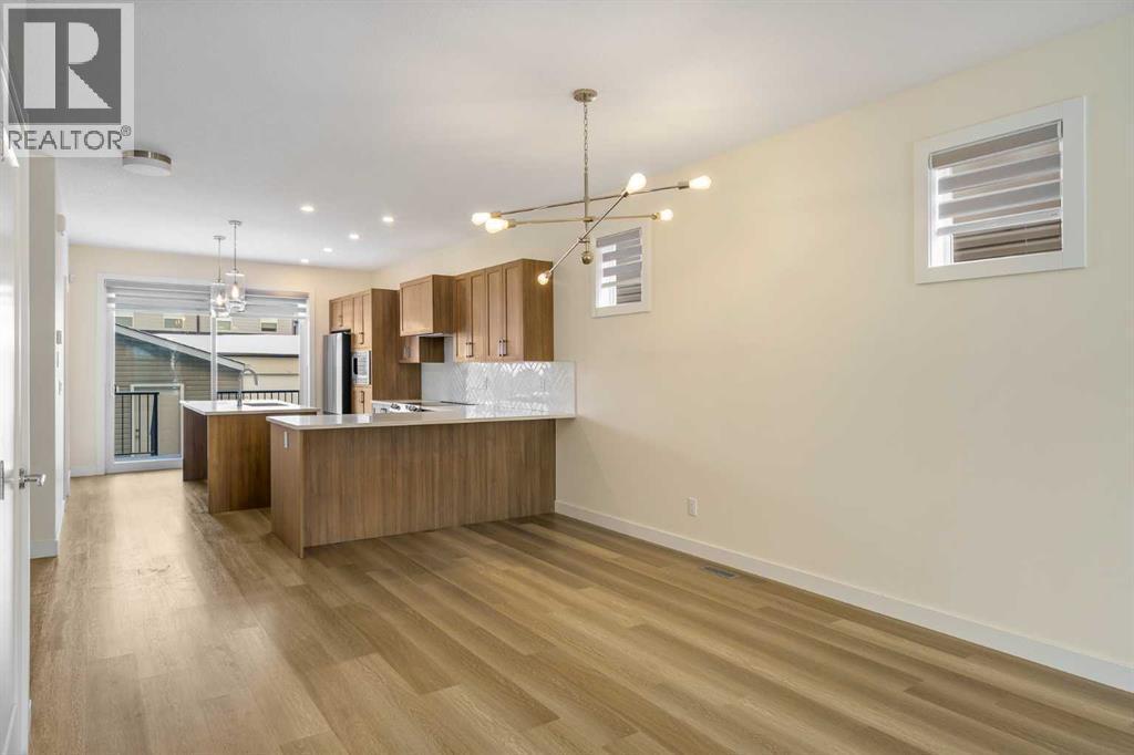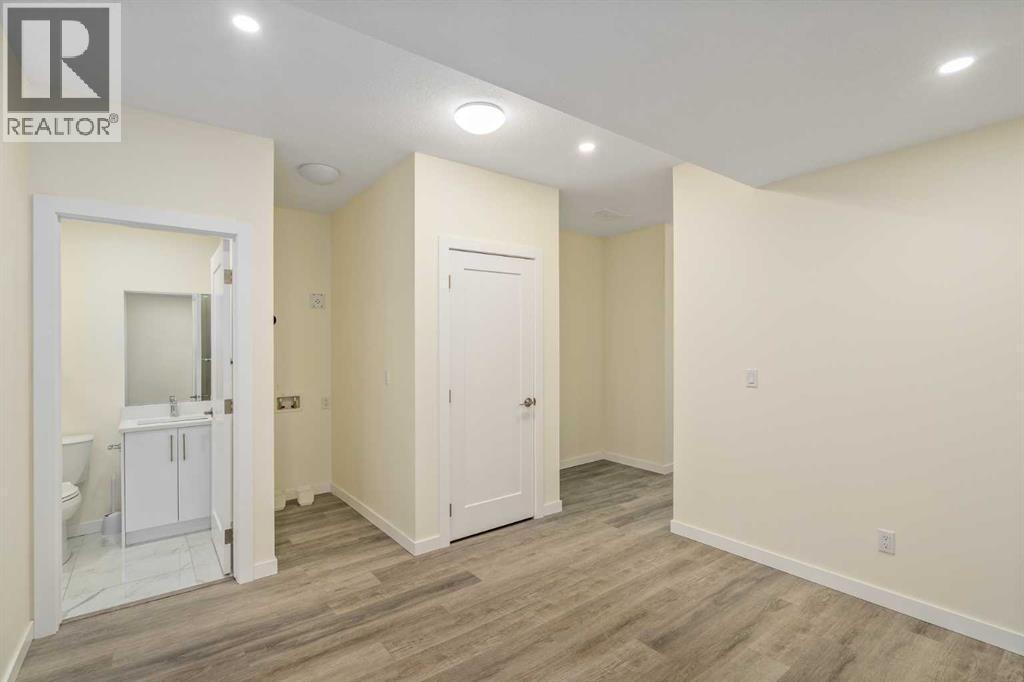 Welcome to this unique and well-maintained home in growing Airdrie, the 5th largest city in Alberta. Great potential for a growing or multi-generational family or investor. With a total of 2,570 sq. ft. of living space over three levels, which includes 5 bedrooms and 3.5 baths, this home provides room to grow. The first impression upon entering is light and bright. A transom window above the entry door, an open area living room, dining, and kitchen with blonde, wide-plank flooring, neutral colours, clean lines and windows and patio doors at opposite ends of the space spell out airy and cheerful. The combined living room/dining area is spacious and presents numerous possibilities as to furniture arrangements. Likewise, the kitchen is a study in sleekness with smooth, shaker-style cabinetry, cool, white quartz countertops, white chevron-style, tiled backsplash, stainless appliances and a breakfast bar/island with deep double, undermount sinks. A 2-pc. bath and rear hall leading to the outside deck finish this level. The carpeted upper level begins with a bonus room at the head of the stairs. Use this as a family room, play area or a home office. The laundry room is conveniently located across the hall. A substantial primary bedroom features a vaulted ceiling, walk-in closet and the privilege of a 4-pc. bath (double vanity). Two additional bedrooms, both with a good amount of closet space, share a tiled 4-pc bath. The lower level, a fully finished illegal suite can be accessed via a side entrance, has wide-plank flooring and boasts a rec room, 2 bedrooms, kitchen with stainless fridge and microwave, 4-pc. bath, utility room and storage area. Roughed-in plumbing is available for washer and dryer hookup. This level is perfect for guests or could be a secondary living area. The back yard features a railed, wooden deck for summer relaxing plus a double, detached garage accessed from the back lane. Adding to the family vibe of this home is the proximity to Airdrie’s Main St reet with shopping (Walmart Supercentre and Home Depot), restaurants, multiple schools, playgrounds, the QE 2 with just minutes to the New Horizon Mall, the City of Calgary and the International Airport. Visit today as this home will move quickly. (id:6769