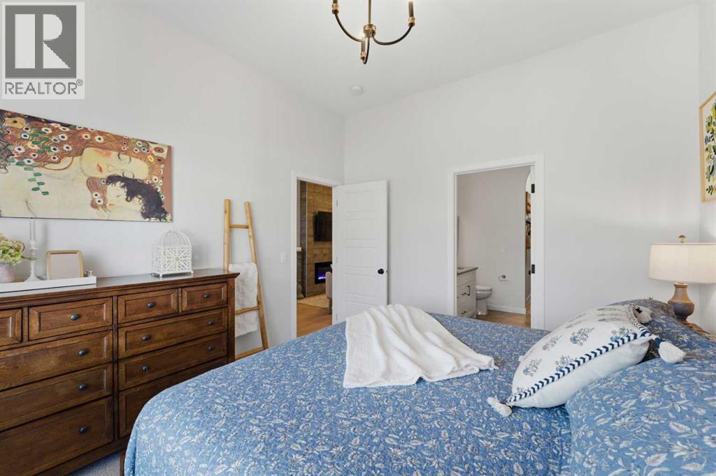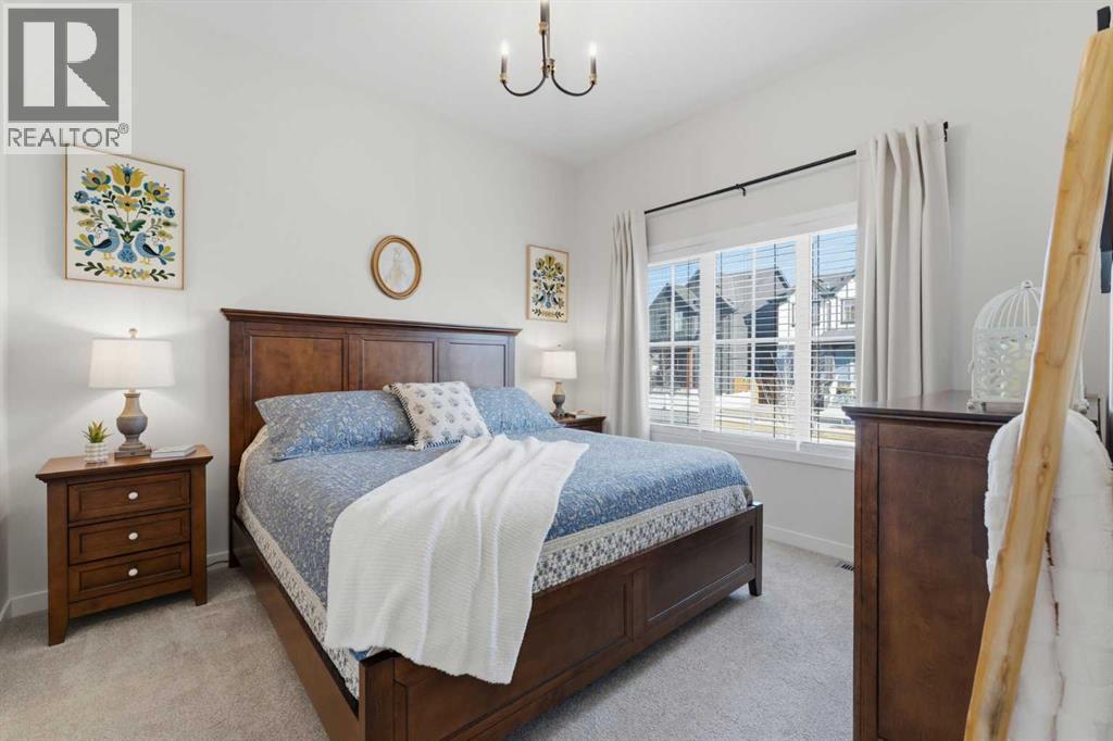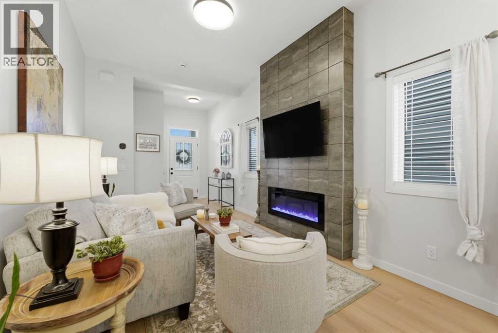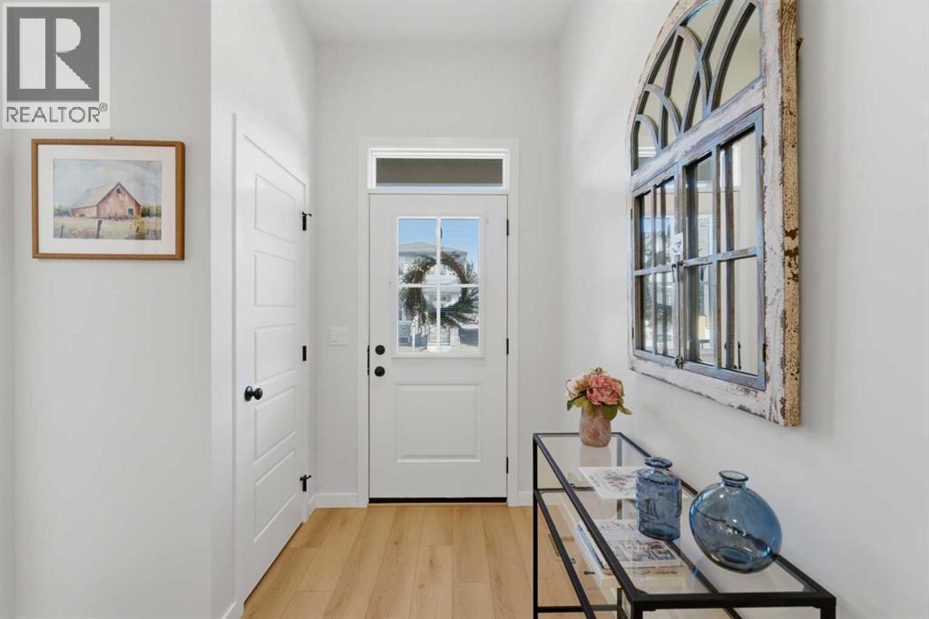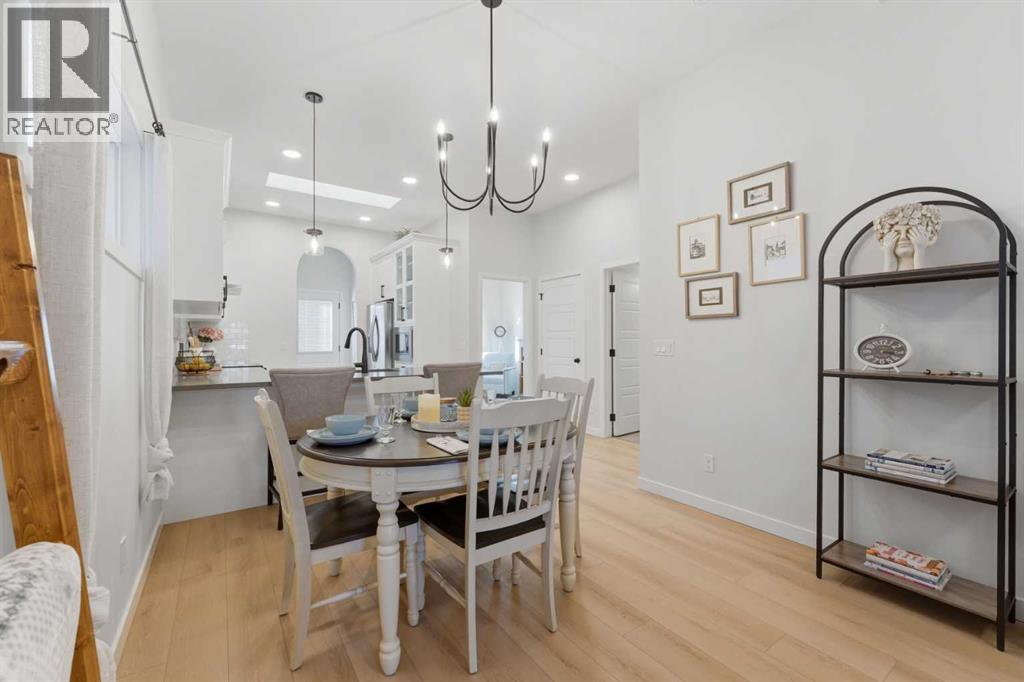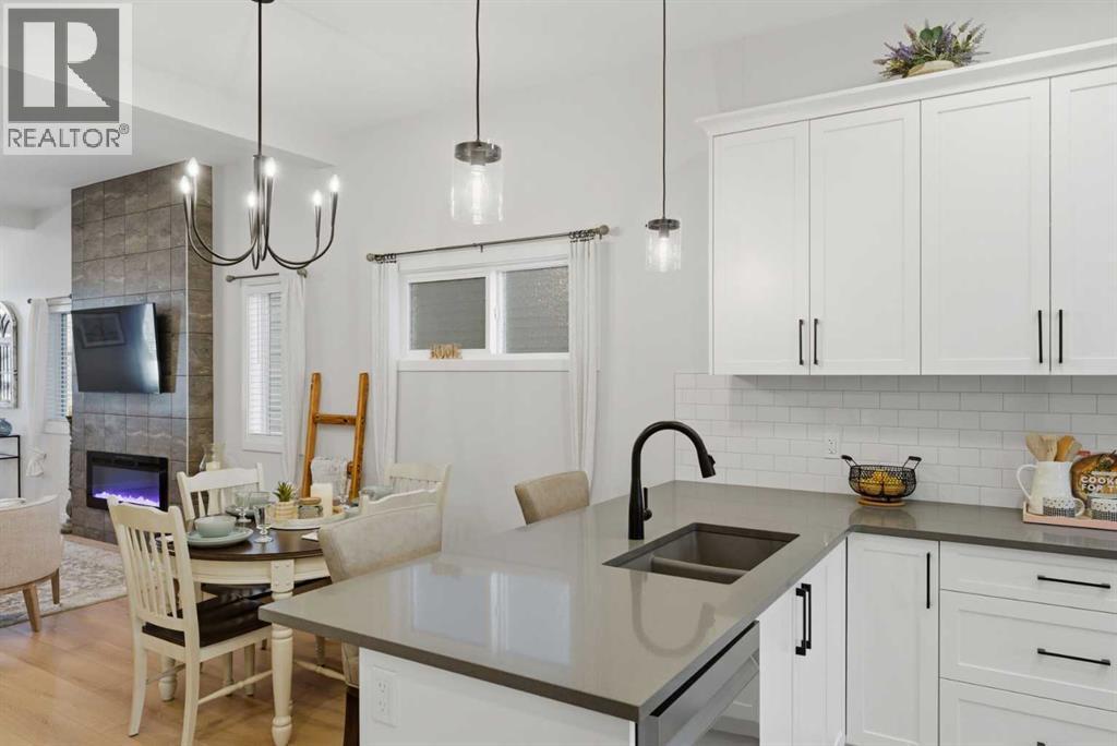 Welcome to an exceptional laned bungalow tucked into the award-winning community of Coopers Crossing in Airdrie where timeless design meets modern comfort in all the right ways.From the moment you arrive, this home makes a statement. Its charming laned configuration allows for a clean, welcoming front façade, while the rear double garage keeps the streetscape elegant and uncluttered. The low-maintenance landscaping frames the property beautifully, offering year-round curb appeal without demanding your weekends. Thoughtfully designed pathways and tidy greenery create a polished first impression that only gets better once you step inside.Open the front door and you’re greeted by soaring 10-foot ceilings on the main floor—an architectural feature that instantly enhances the sense of space and light. The expansive height amplifies every detail, from the modern lighting fixtures to the oversized windows that bathe the home in natural sunshine. The result is an airy, uplifting atmosphere that feels both luxurious and inviting.A Kitchen Designed to Impress. At the heart of the home lies a custom kitchen crafted for both everyday living and memorable entertaining. Beautiful cabinetry, sleek countertops, and thoughtful storage solutions combine style with functionality. A full set of appliances ensures you’re ready to host everything from intimate dinners to holiday gatherings. Whether you’re preparing a quiet morning coffee or a gourmet feast, this kitchen is as inspiring as it is practical.Above, a skylight draws in streams of natural light, adding warmth and brightness throughout the day. It’s the kind of detail that subtly transforms the mood of the entire living space—sunshine by day, soft stargazing ambiance by night.Comfortable & Cozy Living SpacesThe living area is anchored by a striking electric fireplace, offering both visual charm and effortless warmth. It’s the perfect focal point—ideal for cozy winter evenings or simply adding a touch of elegance to the ro om year-round.To ensure comfort in every season, the home is equipped with a central AC unit, keeping the interior refreshingly cool during Alberta’s warm summer months. Combined with the home’s thoughtful design, this creates an environment that feels just right, no matter the weather outside.Thoughtful Bedroom & Bathroom LayoutThis bungalow features 2 spacious bedrooms and 2 full bathrooms, all conveniently located on the main level for easy living.The primary suite is a private retreat—generous in size and designed for relaxation. Large windows provide natural light, while the adjoining full ensuite offers a spa-like experience with quality finishes and ample space to unwind.The second bedroom is perfect for guests, family, or even a stylish home office. A second full bathroom ensures comfort and privacy for everyone.Outdoor Living at Its FinestStep outside to discover a large rear deck—an extension of your living space that’s ideal for summer barbecues, morning coffee rituals, or quiet evenings (id:6769