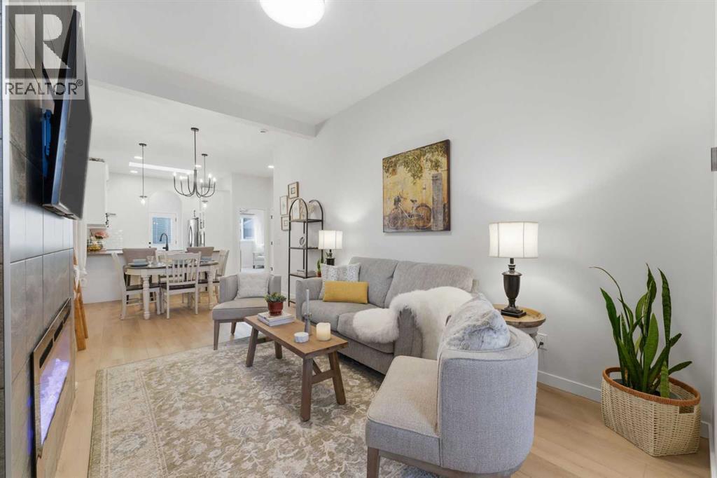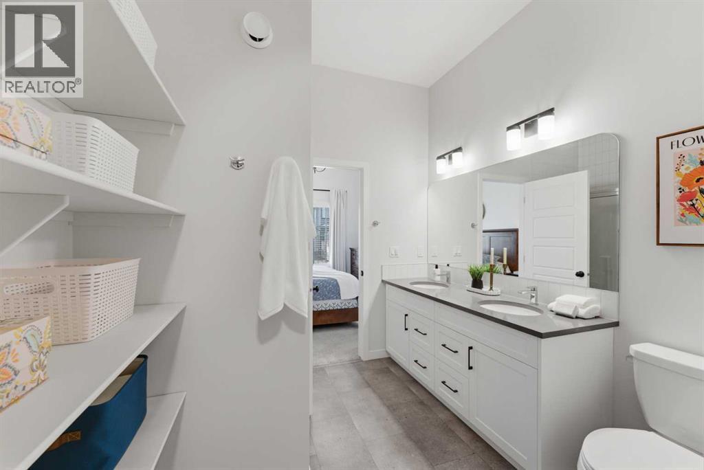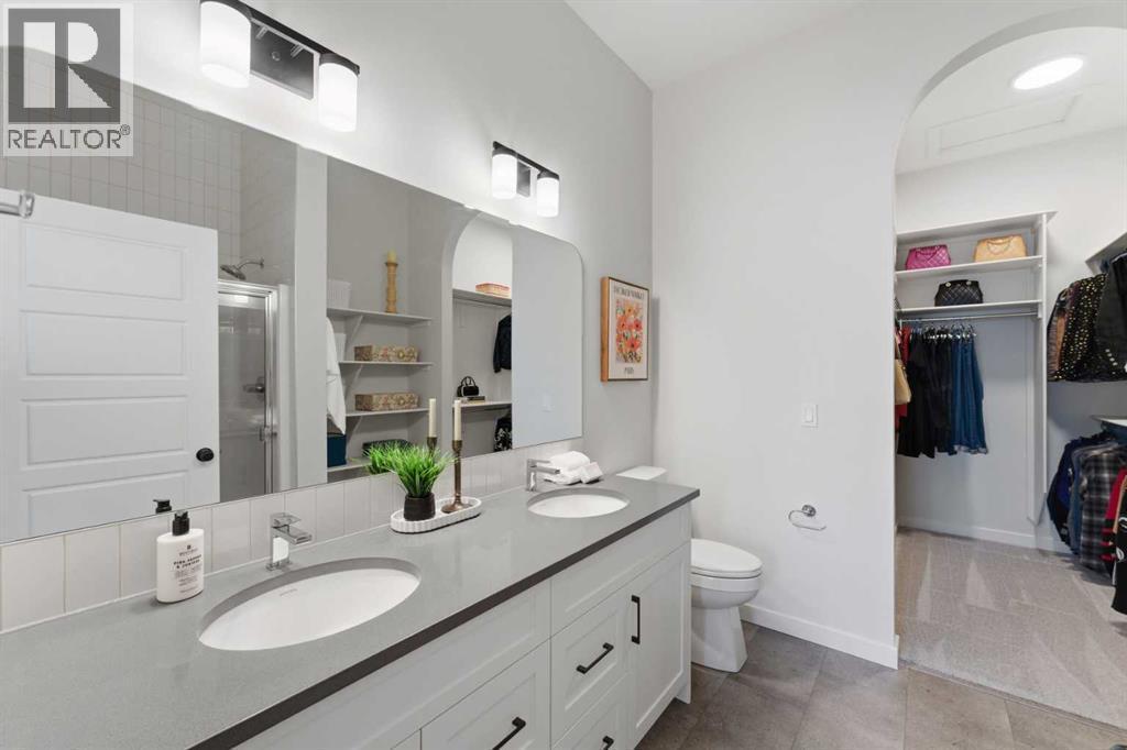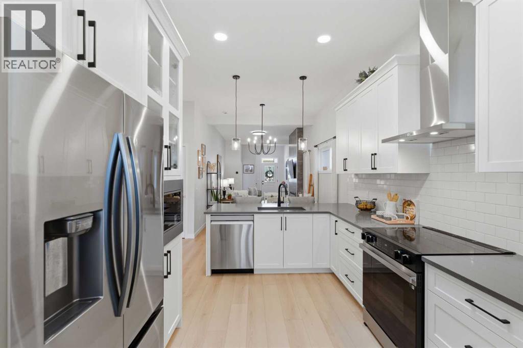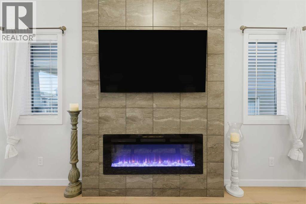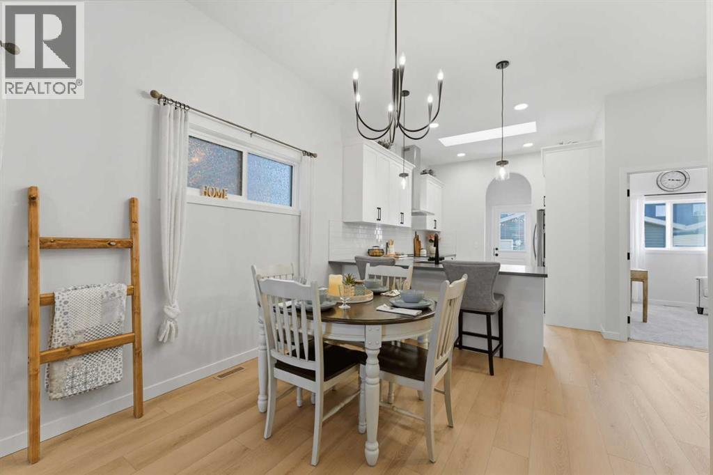 Welcome to an exceptional laned bungalow tucked into the award-winning community of Coopers Crossing in Airdrie where timeless design meets modern comfort in all the right ways.From the moment you arrive, this home makes a statement. Its charming laned configuration allows for a clean, welcoming front façade, while the rear double garage keeps the streetscape elegant and uncluttered. The low-maintenance landscaping frames the property beautifully, offering year-round curb appeal without demanding your weekends. Thoughtfully designed pathways and tidy greenery create a polished first impression that only gets better once you step inside.Open the front door and you’re greeted by soaring 10-foot ceilings on the main floor—an architectural feature that instantly enhances the sense of space and light. The expansive height amplifies every detail, from the modern lighting fixtures to the oversized windows that bathe the home in natural sunshine. The result is an airy, uplifting atmosphere that feels both luxurious and inviting.A Kitchen Designed to Impress. At the heart of the home lies a custom kitchen crafted for both everyday living and memorable entertaining. Beautiful cabinetry, sleek countertops, and thoughtful storage solutions combine style with functionality. A full set of appliances ensures you’re ready to host everything from intimate dinners to holiday gatherings. Whether you’re preparing a quiet morning coffee or a gourmet feast, this kitchen is as inspiring as it is practical.Above, a skylight draws in streams of natural light, adding warmth and brightness throughout the day. It’s the kind of detail that subtly transforms the mood of the entire living space—sunshine by day, soft stargazing ambiance by night.Comfortable & Cozy Living SpacesThe living area is anchored by a striking electric fireplace, offering both visual charm and effortless warmth. It’s the perfect focal point—ideal for cozy winter evenings or simply adding a touch of elegance to the ro om year-round.To ensure comfort in every season, the home is equipped with a central AC unit, keeping the interior refreshingly cool during Alberta’s warm summer months. Combined with the home’s thoughtful design, this creates an environment that feels just right, no matter the weather outside.Thoughtful Bedroom & Bathroom LayoutThis bungalow features 2 spacious bedrooms and 2 full bathrooms, all conveniently located on the main level for easy living.The primary suite is a private retreat—generous in size and designed for relaxation. Large windows provide natural light, while the adjoining full ensuite offers a spa-like experience with quality finishes and ample space to unwind.The second bedroom is perfect for guests, family, or even a stylish home office. A second full bathroom ensures comfort and privacy for everyone.Outdoor Living at Its FinestStep outside to discover a large rear deck—an extension of your living space that’s ideal for summer barbecues, morning coffee rituals, or quiet evenings (id:6769