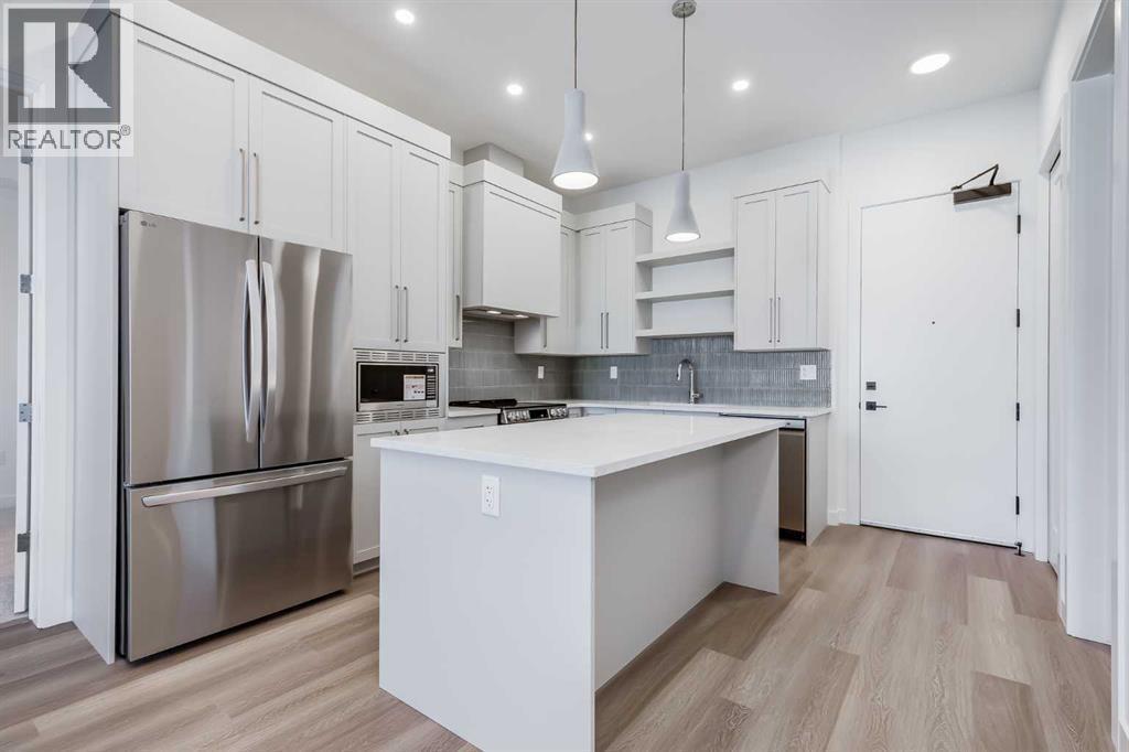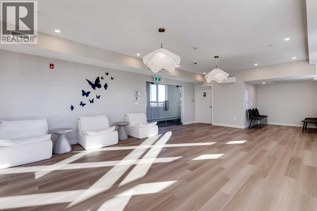 Perched on the top floor, this impressive B4 floor plan showcases 10-foot ceilings and a bright eastern-facing exposure, creating an airy, light-filled living space. The thoughtfully designed 2-bedroom, 2-bath plus den layout offers modern open-concept living, finished with quartz countertops throughout, luxury vinyl plank flooring, and contemporary recessed lighting. The primary suite features a walk-in closet and a private ensuite, while wall-unit air conditioning ensures year-round comfort.The Monarch delivers an exceptional amenity experience, including a fully equipped gym, yoga studio, boardroom, large residents’ lounge, party room with deck and BBQ, two rooftop decks, guest suite, and a dog wash station. Underground parade parking adds everyday convenience.Ideally located in the Cooper’s Crossing community, just steps from Coopers Promenade and close to schools, parks, and everyday amenities, with quick access to 8th Avenue, 40th Avenue, and Highway 2 for an easy commute to Calgary. Additional units are available, offering flexibility to suit a variety of lifestyles. A fantastic opportunity to enjoy low-maintenance, upscale living in one of Airdrie’s premier neighborhoods. (id:6769