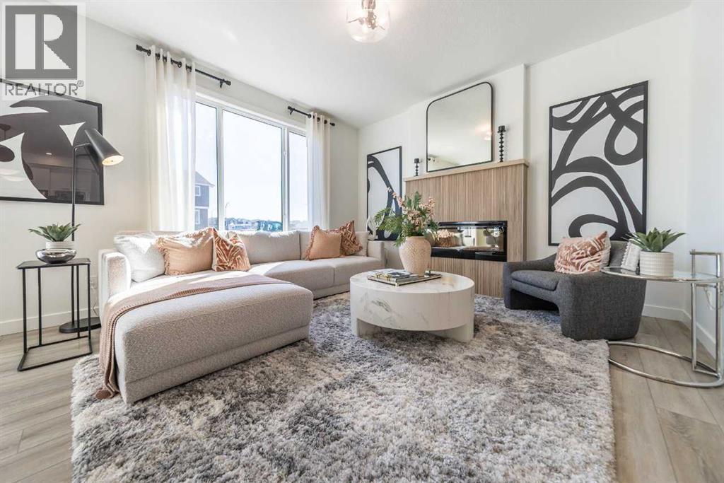 Welcome to the Birkley 3 by Sterling Homes Calgary! Built by a trusted builder with over 70 years of experience, this home showcases on-trend, designer-curated interior selections tailored for a home that feels personalized to you. Energy efficient and smart home features, plus moving concierge services included in each home.Welcome to this beautifully appointed 2025 specification home situated on a sunshine lot. The kitchen features a chimney hood fan with microwave wall unit, pendant lighting above the eating ledge, and a convenient walk-in pantry. The ensuite offers a fiberglass base shower with tiled walls, a tiled niche, and a bank of drawers for added storage. Fall in love with the maple railing with iron spindles that add the perfect finishing touch to this home. Photos are representative.Enjoy thoughtful upgrades throughout, including a side entrance, painted basement floor, larger basement windows, and added garage width. Relax by the electric fireplace with maple cap or step out onto the 10' x 12' rear deck complete with BBQ gas line. This energy-efficient home is Built Green certified and includes triple-pane windows, a high-efficiency furnace, and a solar chase for a solar-ready setup. With blower door testing, plus an electric car charger rough-in, it’s designed for sustainable, future-forward living. Featuring a full range of smart home technology, this home includes a programmable thermostat, ring camera doorbell, smart front door lock, smart and motion-activated switches—all seamlessly controlled via an Amazon Alexa touchscreen hub. Spme photos are a representative. (id:6769