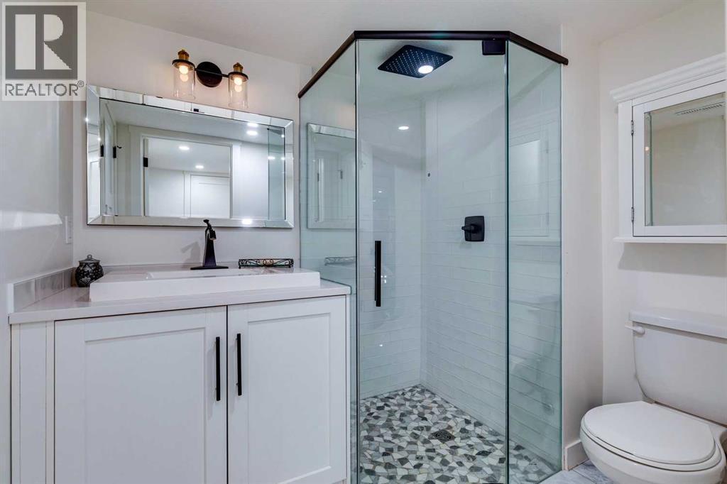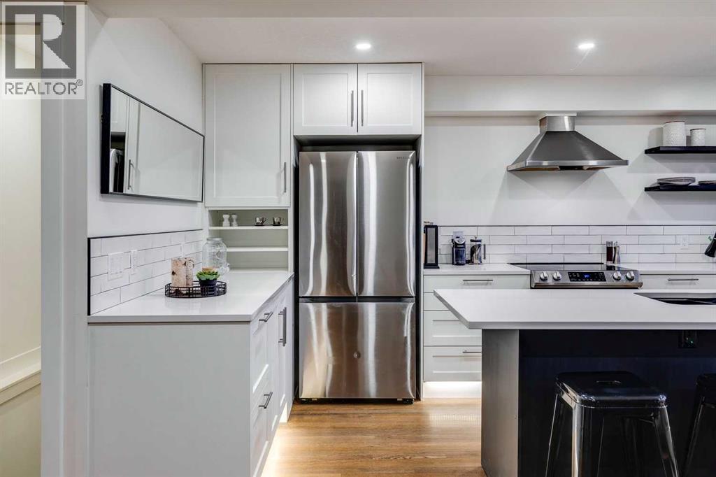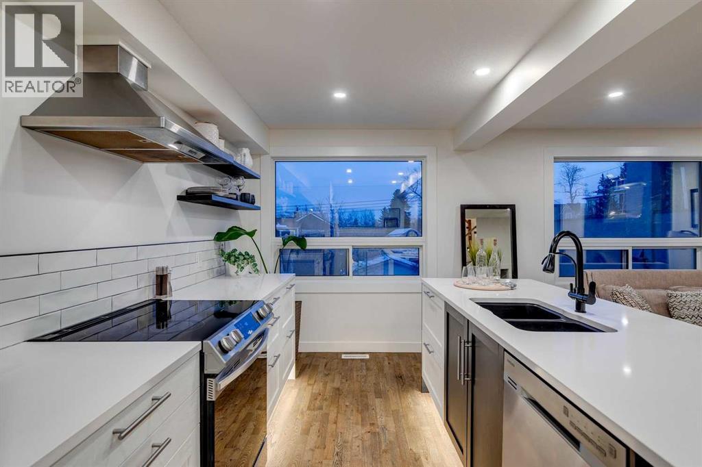 This fully renovated 1431 sq ft home offers the quintessential rooftop entertaining experience beneath the city skyline. Situated in Calgary’s highly sought-after inner-city community of Bankview, the home features an expansive 450 sq. ft. private rooftop patio boasting panoramic views extending across the downtown core. This rooftop space serves as an exceptional venue for any occasion, from summer soirées and barbecues to enjoying evening cocktails or relaxing during leisure time.The interior showcases a modern, sophisticated layout, comprising three bedrooms and two fully remodeled bathrooms, ideal for various uses such as co-habitation, a dedicated home office, or a creative studio. The open-concept kitchen is designed for social interaction, featuring quartz countertops, stainless steel appliances, and island seating that seamlessly connects with the bright, airy living room, complete with an electric fireplace and a stylish feature wall. The upper level provides access to two bedrooms and a full bathroom, both conveniently linked to the private rooftop retreat. The main floor includes an additional bedroom or office, a second full bathroom, and a practical mudroom.The walkout basement opens onto a landscaped yard, enhanced with mature fruit trees, providing an ideal setting for outdoor gatherings or tranquil repose. A heated garage offers enhanced versatility, suitable for use as a gymnasium, studio, or workspace. Additional amenities include two separate washer/dryer hookups located on the main floor and in the walkout basement.This home was extensively remodeled and renovated in the last 5 years which includes: All plumbing and electrical including new furnace and hot water tank. Completely remodeled kitchen and bathrooms, new composite deck and all exterior redone such as stucco, stairs, fence and landscaping. All windows and doors, interior exterior doors replaced, new flooring, all new drywall inside with new insulation inside the walls, LED pot-l ights with dimmers, stair and cabinet toe kick lighting and so much more. (id:6769