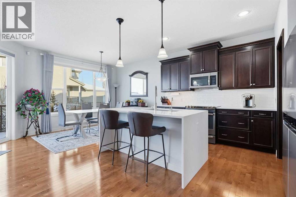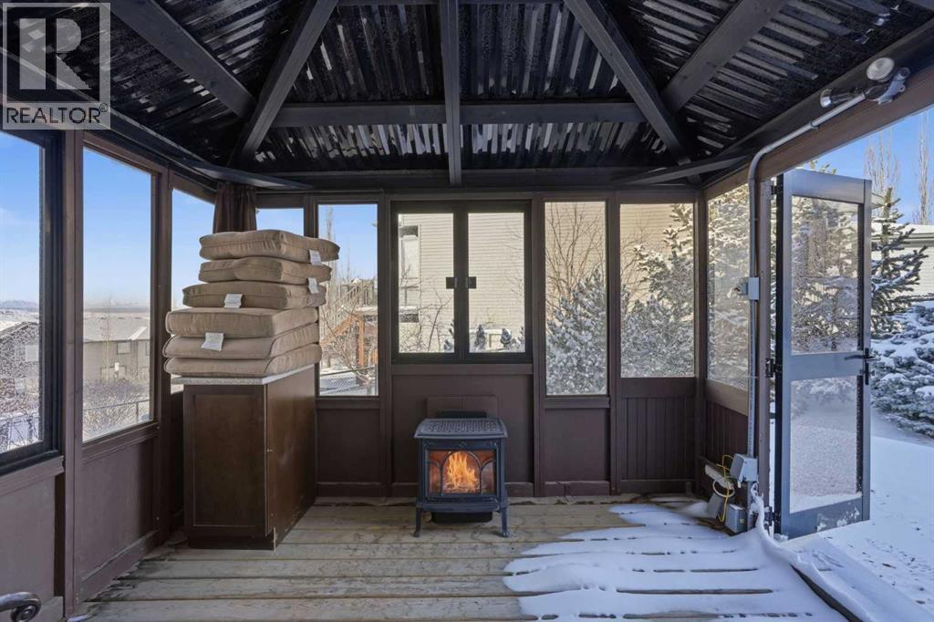 Welcome to one of the most uniquely positioned homes on the street, offering clear, unobstructed MOUNTAIN VIEWS from the backyard, dining room, primary bedroom, and even the ensuite bath. Surrounded by three green spaces, this home delivers a rare sense of privacy, openness, and connection to nature where morning coffee comes with mountain sunrises and evenings wind down under Cochrane’s painted skies.Extensively renovated and thoughtfully upgraded, the home features a 3-year-old designer kitchen with new appliances and three custom waterfall countertops, a true focal point for gathering and entertaining. Motion sensored Under-cabinet lighting, rounded drywall corners, hardwood floors on the main and upper levels, comfort, and quality throughout.Major mechanical upgrades provide peace of mind and everyday comfort, including AC, high-efficiency furnace (2021) with UV air purification system for crisp, clean air, an upgraded 60-gallon electric hot water tank, water softener, and a full home water filtration system with reverse osmosis (2013) for premium drinking water. Fireplaces have been recently cleaned and serviced. Fully wired with Telus security and surround sound speakers.Designed for both relaxation and entertaining, the home features two custom decks with a gas fire pit that capture the mountain views, along with a fully wired backyard gazebo complete with gas fireplace, TV hookup, electricity, and space to host year-round. The basement offers a wet bar, steam shower, and a versatile soundproofed entertainment area easily transformed into a theatre room, home gym, or yoga retreat.Zero-scaped landscaping ensures a low-maintenance lifestyle so you can spend more time enjoying the setting and less time maintaining it.A rare opportunity to own one of the few homes in this location with true unobstructed mountain views, thoughtful upgrades, and a lifestyle that’s hard to replicate. (id:6769