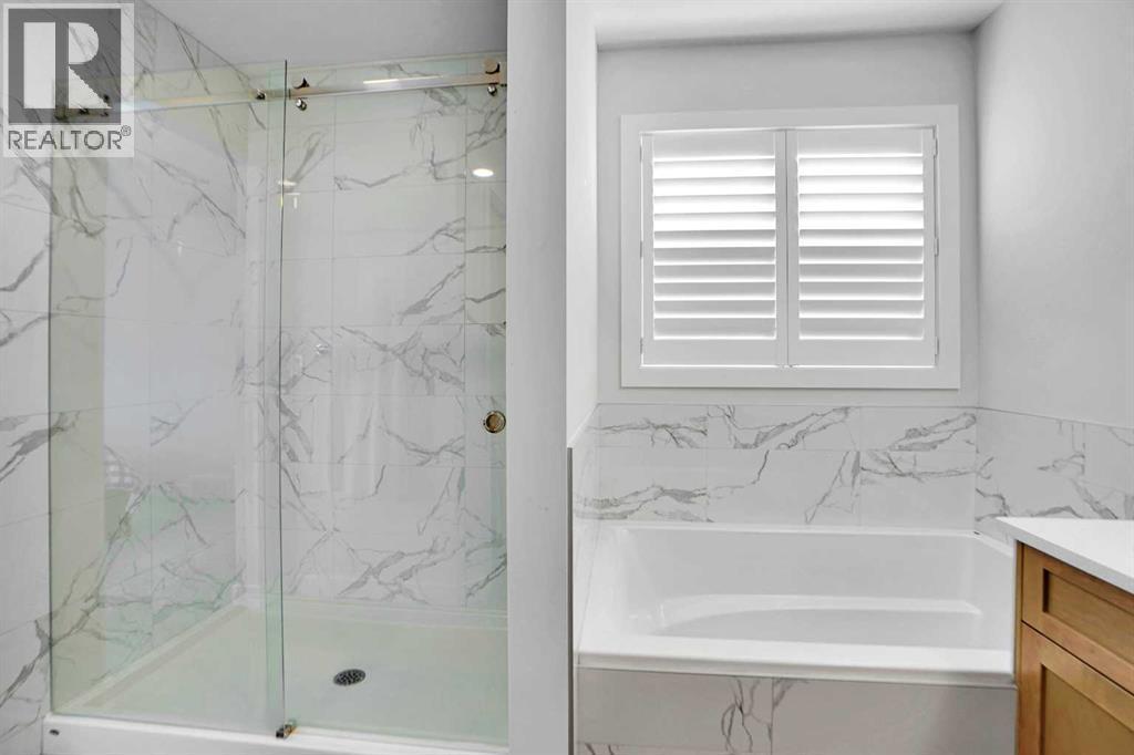 Welcome to this beautifully upgraded and thoughtfully designed home in the vibrant and fast-growing community of Ambleton NW. Built by Sterling Homes Calgary, a respected builder known for quality craftsmanship and modern finishes, this residence offers exceptional functionality, comfort, and style in a prime location near parks, green spaces, and walking pathways.The main floor features a bright Open-concept layout designed for both everyday living and entertaining. The upgraded kitchen showcases premium appliances, ample cabinetry, and seamless flow into the dining and living areas. Large windows fill the space with natural light, while luxury vinyl plank flooring throughout the main level enhances durability and complements the modern aesthetic. A convenient half bathroom is positioned for guests and daily use, and elegant wooden shutter blinds add both sophistication and privacy. Upstairs, you’ll find three spacious bedrooms centered around a versatile bonus room ideal as a family lounge, media area, or home office. The primary bedroom serves as a private retreat, complete with a walk-in closet and a beautifully appointed ensuite featuring a walk-in shower, soaker tub, elegant vanity, and contemporary finishes. Two additional bedrooms are serviced by a full bathroom, and the upper-level laundry adds everyday practicality.The professionally finished basement extends the home’s living space with a fourth bedroom, an additional full bathroom with shower, and a comfortable recreation area perfect for guests, extended family, or flexible use.Step outside to a fully completed backyard designed for enjoyment and low maintenance. Professionally installed landscaping with premium green turf and a concrete pad ideal for a gazebo or outdoor seating offers year-round usability. The double front-attached garage features epoxy flooring, providing a clean, durable, and polished finish.Located in one of NW Calgary’s most desirable emerging communities, this move-in-read y home combines upgraded finishes, thoughtful design, and modern outdoor living an excellent opportunity in today’s market. (id:6769
