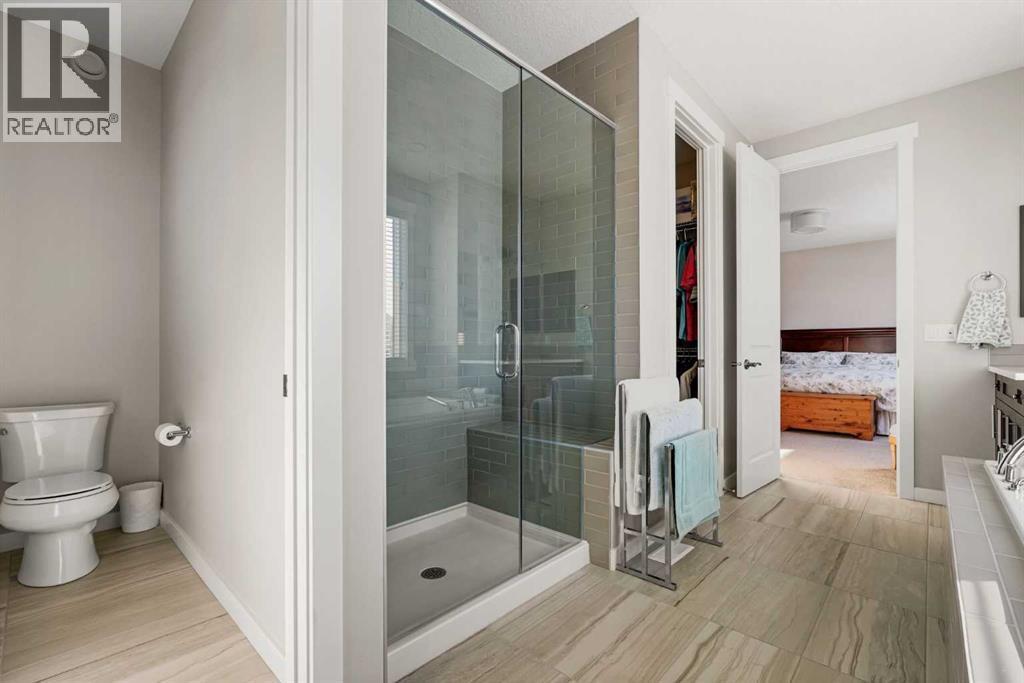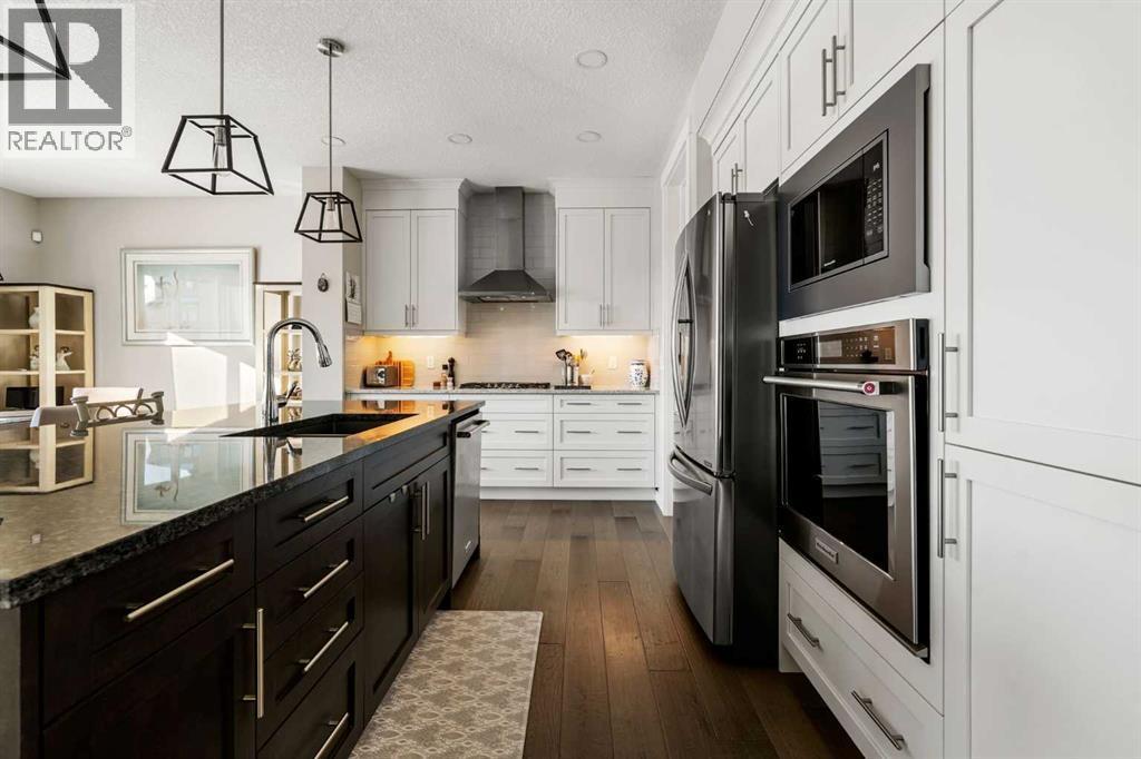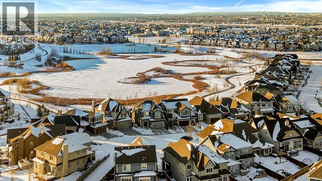 Beautiful LIKE NEW home in the Lake Community of Mahogany on a cul-de-sac, siding and backing onto the wetlands. ORIGINAL OWNERS have kept the home immaculate, showcasing substantial upgrading throughout. ONLY A TWELVE MINUTE WALK TO THE BEACH CLUB, This home is nearby fields, parks, scenic pathways, natural wetlands and within walking distance to the Elementary School!This Walk Out home features an open concept main floor with 9-foot ceilings on all 3 floors and plenty of triple glazed windows across the back so you can enjoy the views. Beautiful hardwood and tile floors flow throughout the main level. The kitchen comes with stylish cabinetry, bright backsplash tile, built-in stainless steel kitchen appliances, upgraded five burner gas cooktop and features beautiful upgraded granite counters on the island. A custom bespoke Butlers Pantry to match the main kitchen, also with an upgraded granite counter, offers additional elegance and storage.The full-width rear deck is complete with a gas line for summer BBQ's and features custom rear awnings for enjoying the tranquil wetland views on a hot summer day.Upstairs, the master suite with spacious ensuite is a true retreat - complete with unobstructed views. This home also features 3 extra bedrooms, a central bonus room, and a fully finished upper floor laundry room. The 8-foot doors upstairs keep the grand proportions flowing.The Walk Out Basement has been professionally developed with permit and is an absolute delight. The family room features large, wetland-facing windows and a beautiful fireplace that would be right at home in a Banff lodge. A custom Oak Wetbar features an exotic leathered granite counter and a perfect space for a work out corner or card table that steps out onto the covered lower patio, which features a second gas line connection. The basement also includes a large guest room and a stunning, top-of-the-line washroom with a fully tiled bath surround a nice deep tub, a quartz ledge, and a stunn ing custom vanity cabinet.Additional high-end features include a 3-Zone furnace and air conditioning system that allows optimal control of heating and cooling throughout, a Built-in Vacuum System, and a Water Softener at service for delicious tap water, soft skin, and smooth hair.The rear yard has been meticulously designed and professionally landscaped with fruit trees, ornamental trees, low shrubs, perennials, and bulbs, completing this absolutely delightful home. (id:6769