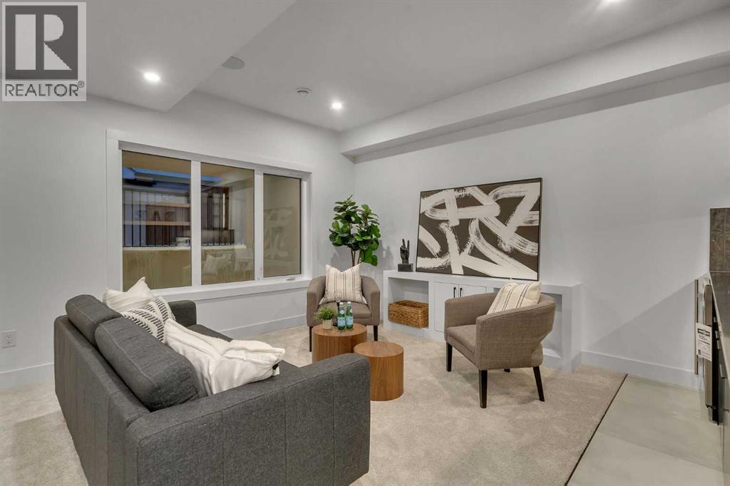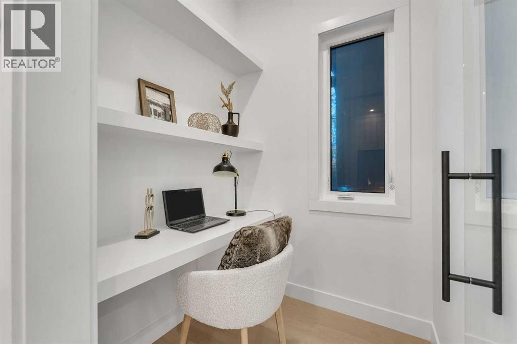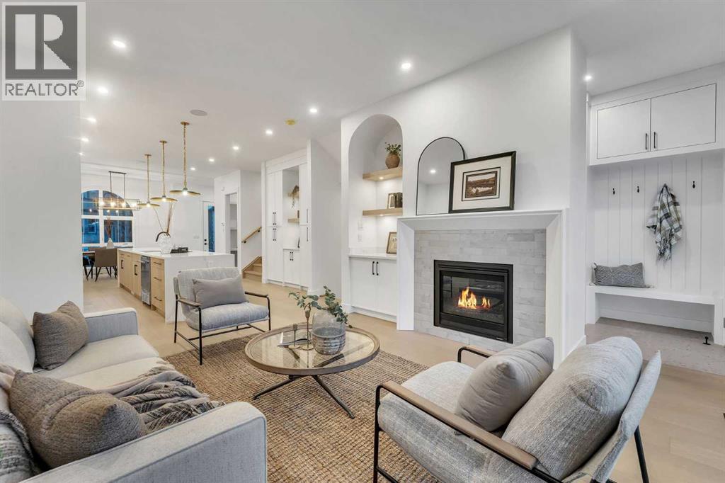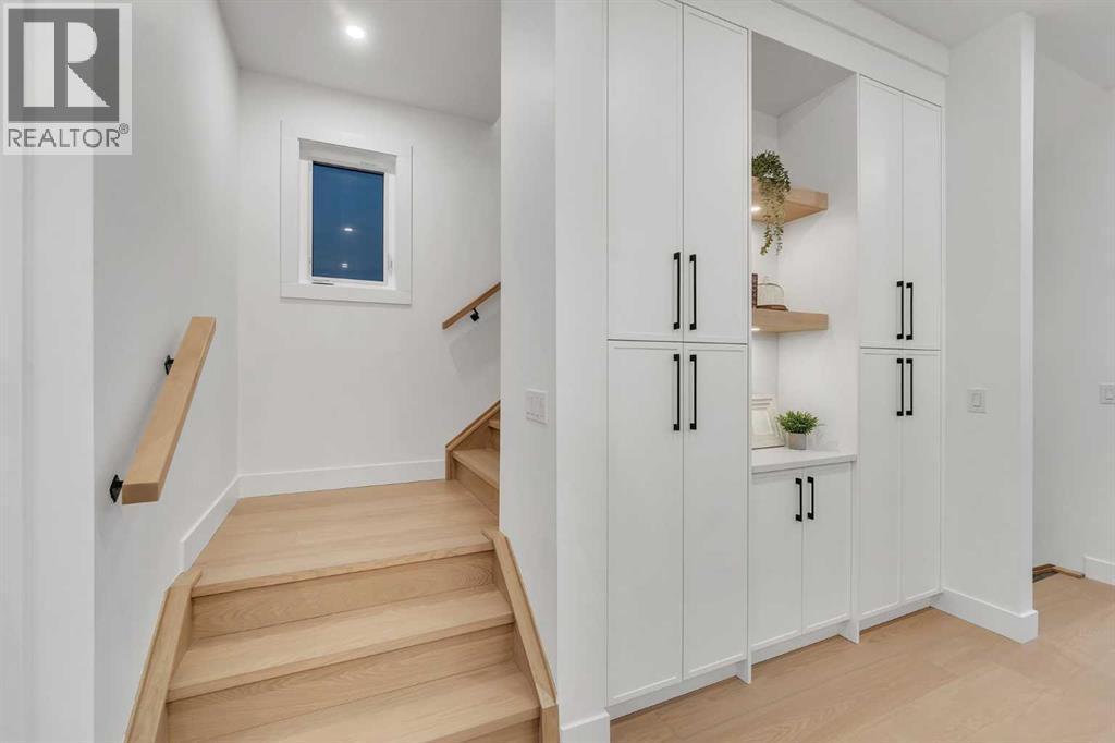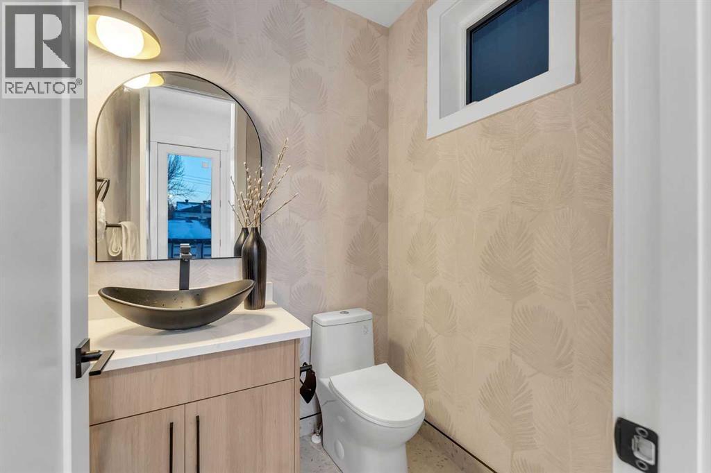 **FREE A/C INSTALLED IF THE SALE IS FIRM BEFORE MARCH 16TH** IMMEDIATE POSSESSION AVAILABLE | 4 BEDROOMS | 3.5 BATHROOMS | WALK-OUT BASEMENT WITH GYM, REC ROOM & WET BAR | SUNNY SOUTH FACING BACKYARD WITH DOWNTOWN VIEWS | Welcome to this brand-new, move-in ready infill that perfectly blends modern sophistication with smart, functional design and an open concept layout. This home has been thoughtfully curated with high-end finishes, tons of natural light, and a layout that combines luxury with practicality. Stepping inside, you're greeted with soaring 10-foot ceilings and expansive windows bringing in an array of natural light. The open-concept main floor flows seamlessly, starting with a welcoming foyer featuring custom built-in cabinetry and a bench - offering convenience, storage, and a stylish first impression. The dining area, bathed in sunlight, sets the tone for everything from casual family dinners to elegant hosting. Just steps away from the dining area - the gourmet kitchen is a true centrepiece and a chef's dream. The kitchen boasts floor-to-ceiling custom cabinetry, quartz countertops, LED under-cabinet and built-in lighting, and top-tier KitchenAid stainless steel appliances. A striking and expansive waterfall island anchors the space - perfect for prepping meals, morning coffees, evening cocktails, or just to get some work done. Extras like a built-in pantry with custom cabinetry, tiled coffee station, and floating shelves with integrated lighting elevate both form and function. Just off the kitchen, you have your own private home office offering a custom glass door and providing a quiet retreat for remote work or study. The spacious living room features a stunning tiled fireplace and oversized double sliding glass patio doors that extend your living space outdoors to the backyard patio offering downtown views - ideal for summer entertaining, morning coffees, or quiet evenings. A well-designed mudroom with built-in cabinets provides additional storage s pace and helps keep daily essentials organized. A chic powder room with a quartz vanity, designer fixtures, LED under lighting, and stunning wallpaper adds a refined touch to the main floor. Upstairs, the primary suite is a showstopper. Custom detailing, an expansive walk-in closet, and a spa-inspired ensuite with IN-FLOOR HEATING, a quartz double vanity, LED accent lighting, backlit mirror, free-standing tub, and oversized glass shower make this a true retreat. Two additional bedrooms, each with their own spacious walk-in closets, provide cozy, private spaces and share a beautifully appointed four-piece bathroom. A dedicated laundry room with custom cabinetry, quartz countertops, and a sink finish off this masterful upper level. The fully finished WALK-OUT basement is thoughtfully designed and features an additional bedroom, four-piece bathroom, gym/exercise area, a wet bar, and recreation area perfect for additional living space. (id:6769